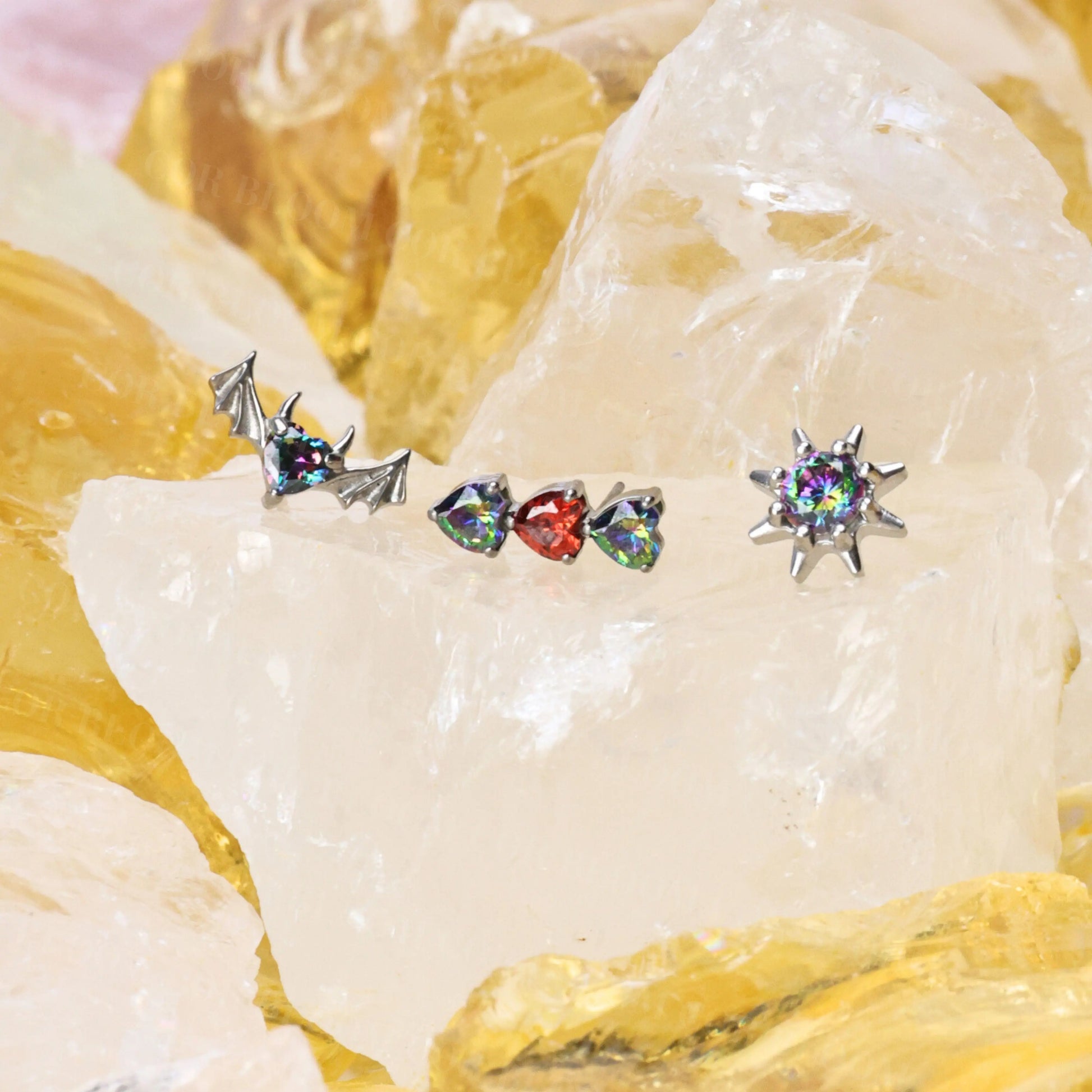 Titanium Aphrodite Rainbow Crown Push Pin Flat Back Stud