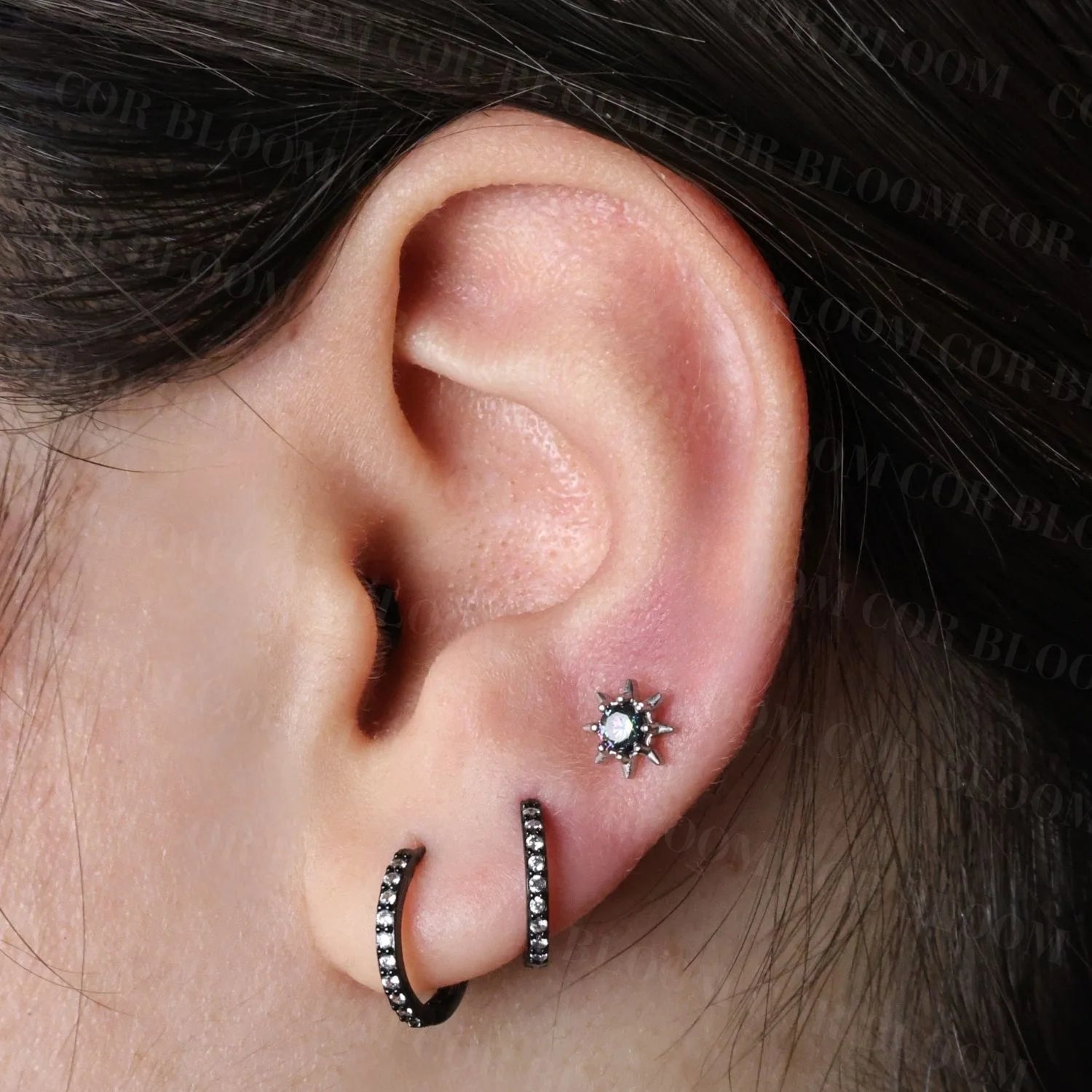 Titanium Dainty Little Diamond Flower Piercing Stud