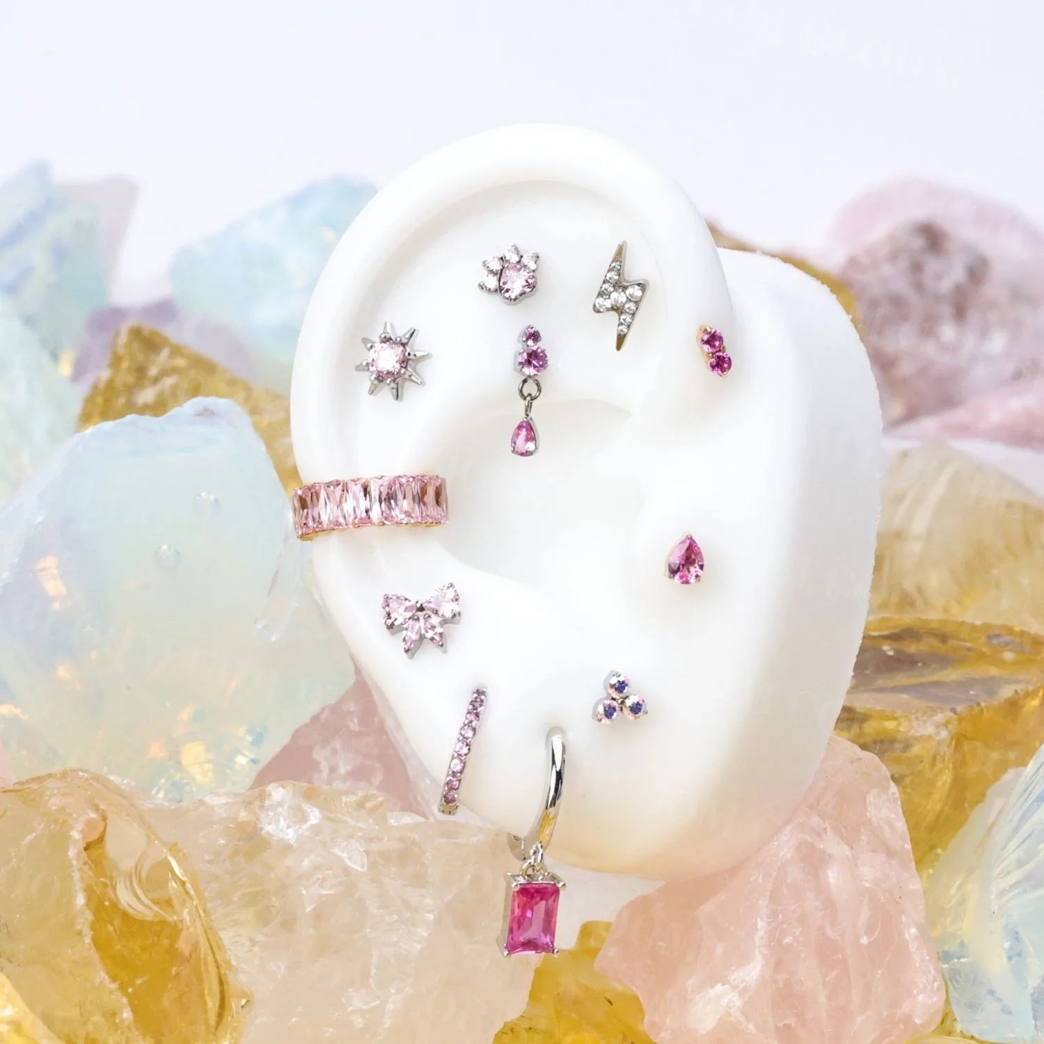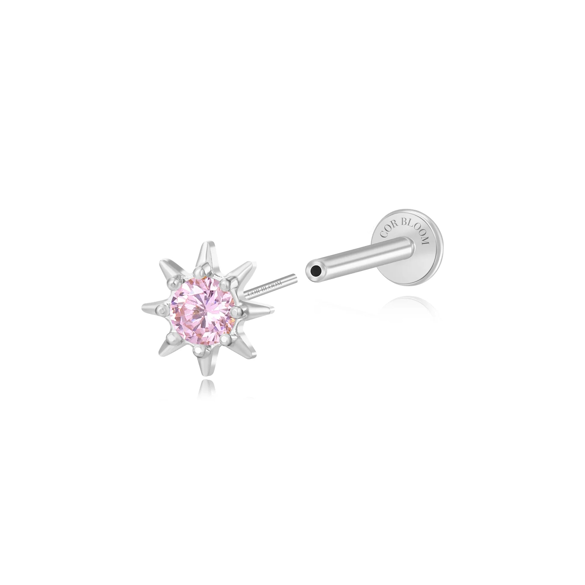 Aeliana Pink Tourmaline Sun Push Pin Flat Back Stud