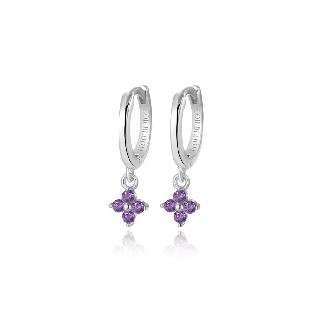 Ella Amethyst Flower Huggie Earrings