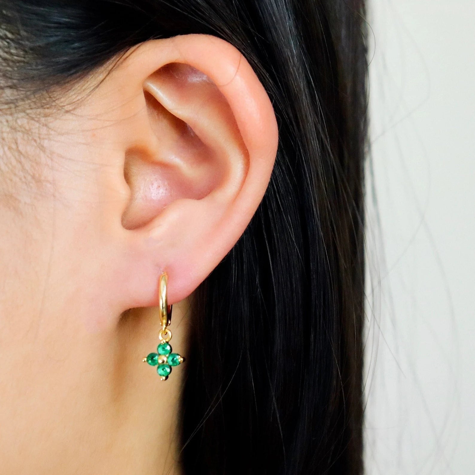 Alaiya Green Emerald Four-Leaf Clover Hoop Earrings