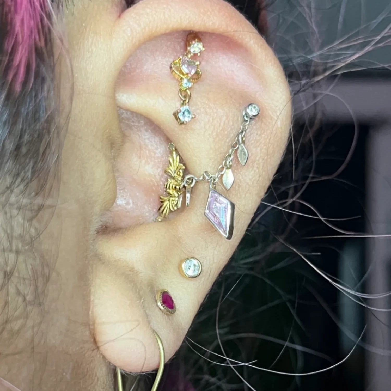 Amalthea Pink Kite-Cut Gemstone Chain Attachment • Cartilage Dangling Chain