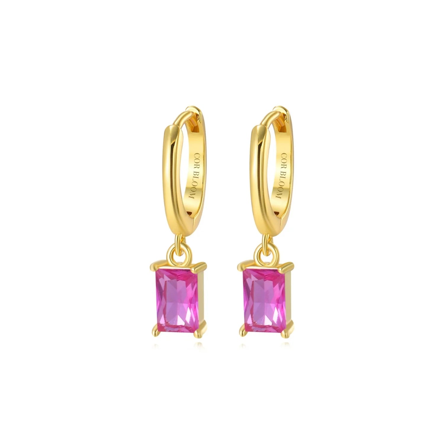 Amelia Ruby Baguette Hoop Earrings