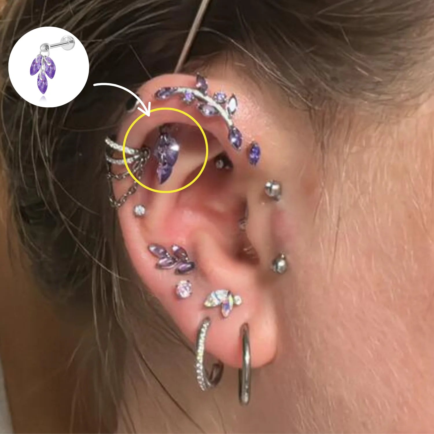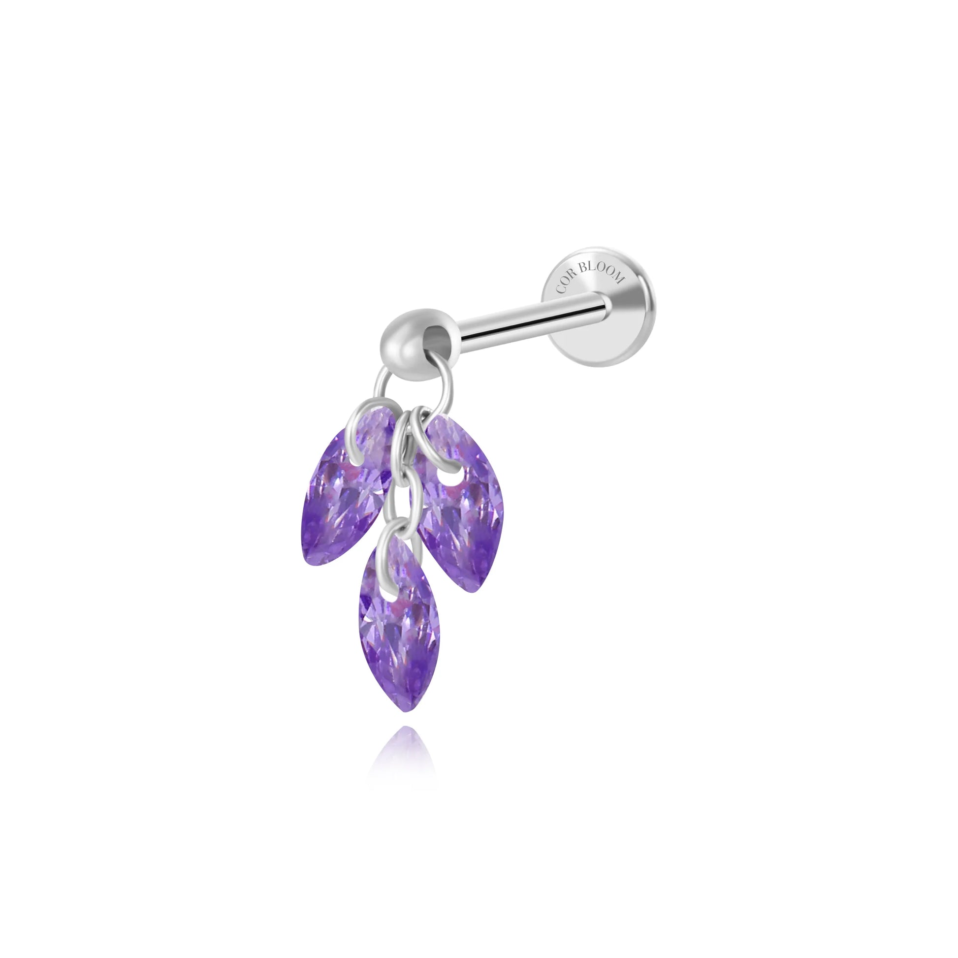Amethyst - Titanium Floating Plume Flat Back Earring | Hidden Helix Stud