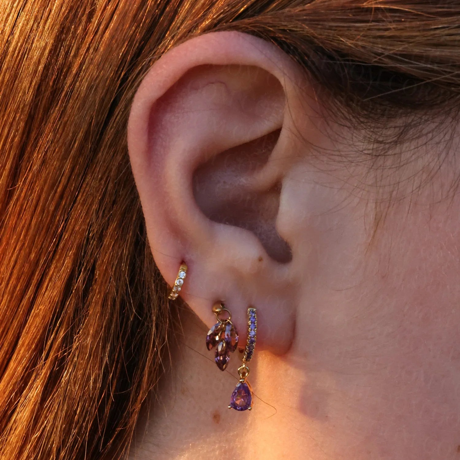 Titanium Yuri Waterdrop Push Pin Stud - Purple Amethyst