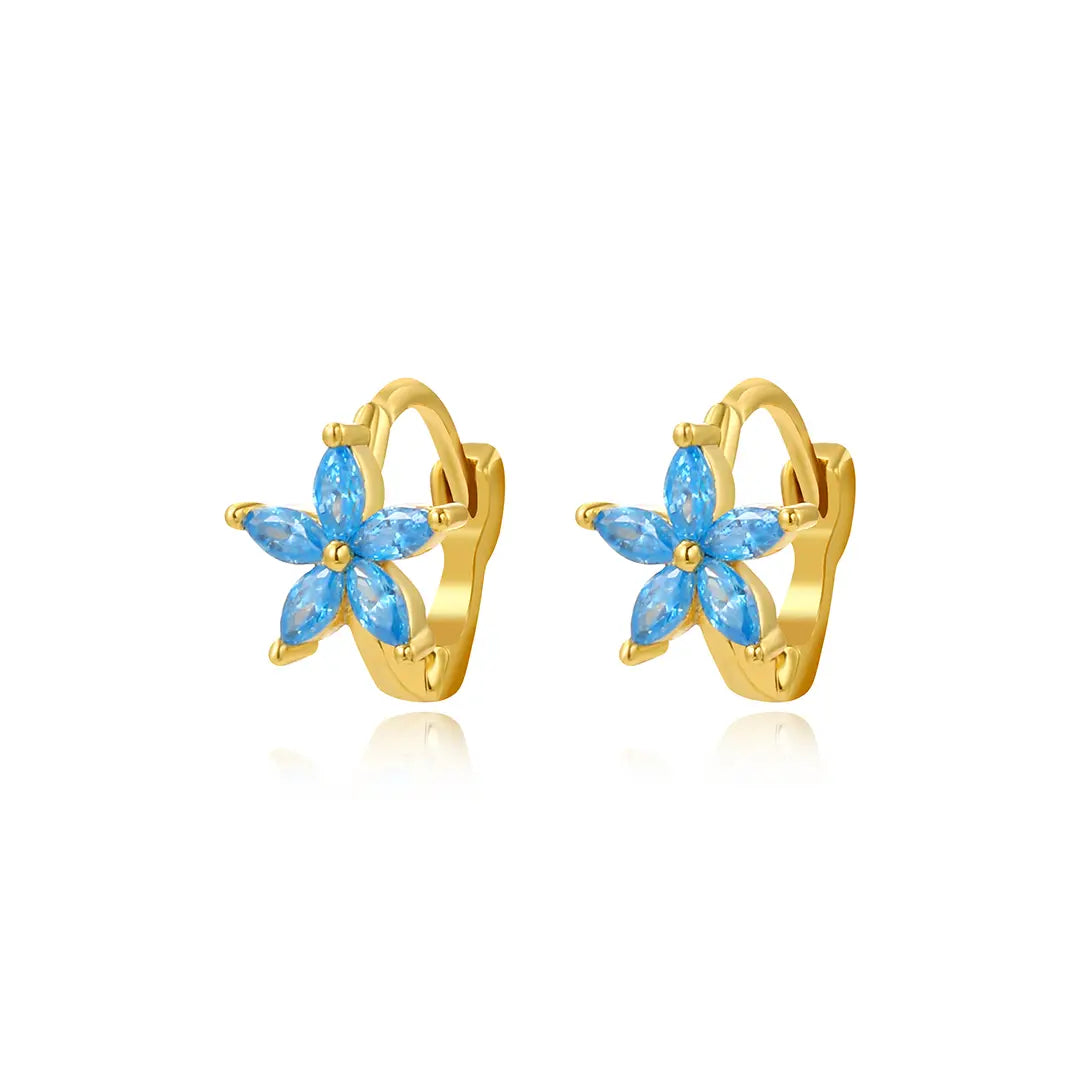 Ella Aquamarine Flower Huggies