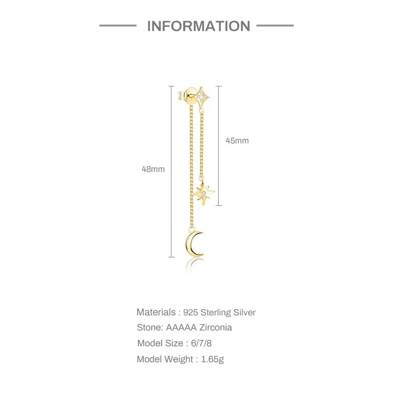Adorn yourself with the timeless enchantment of our Crescent Moon & Northern Star Threader Earrings. The classic elegance of a crescent moon combined with a northern star is a must-have piece for a dreamy ear stack that will turn heads. Crafted from solid 925 Sterling Silver, these earrings will become a timeless treasure.