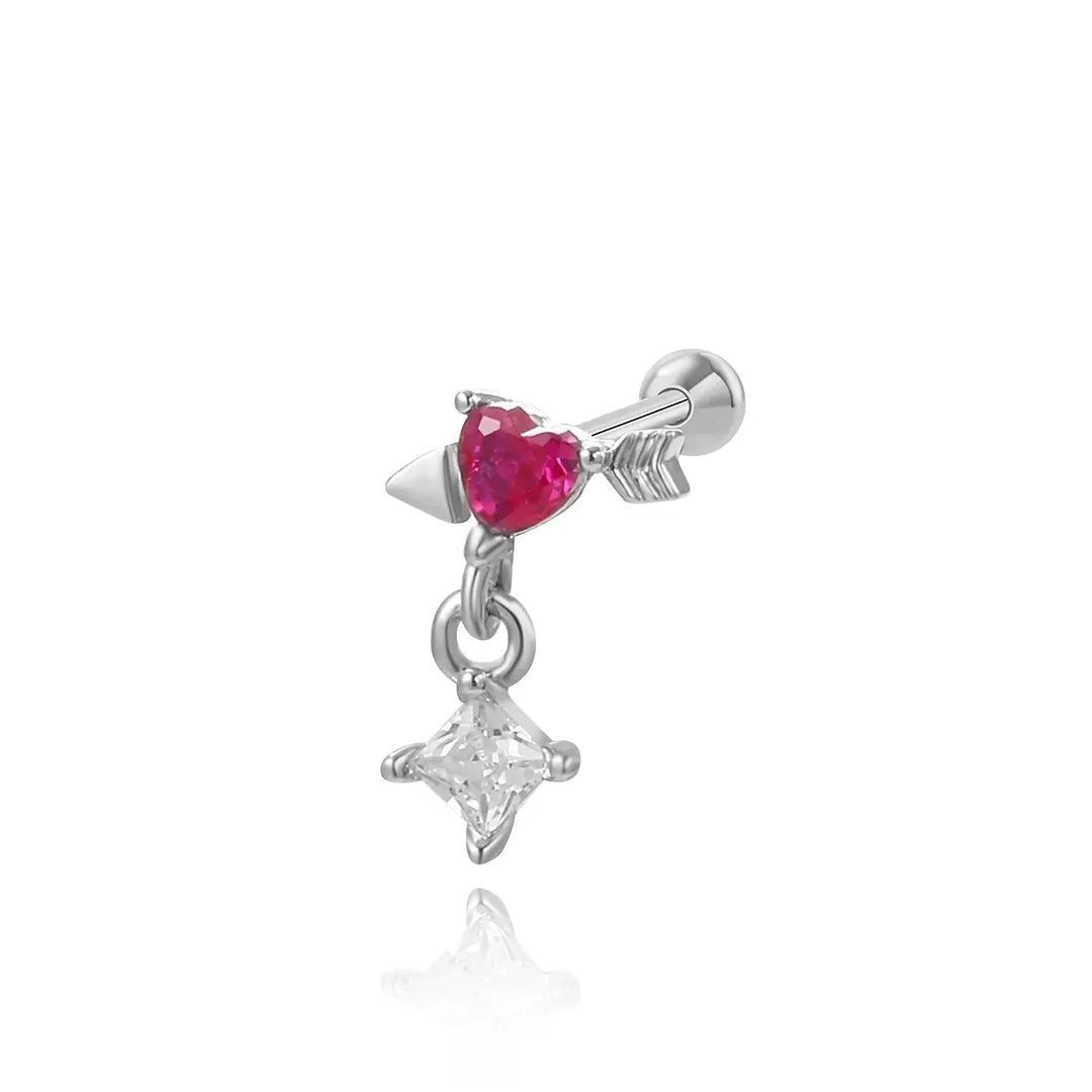 A romantic and insanely cute threaded screw back that captures the essence of love and Cupid's arrow. Crafted with sparkling ruby stone and hypoallergenic materials, this screw-back stud earring features a charming design with a Loving Heart with Cupid's Arrow, creating a playful and enchanting piece. Wear this unique piece and add it to your ear stack to create a unique and personalized look!