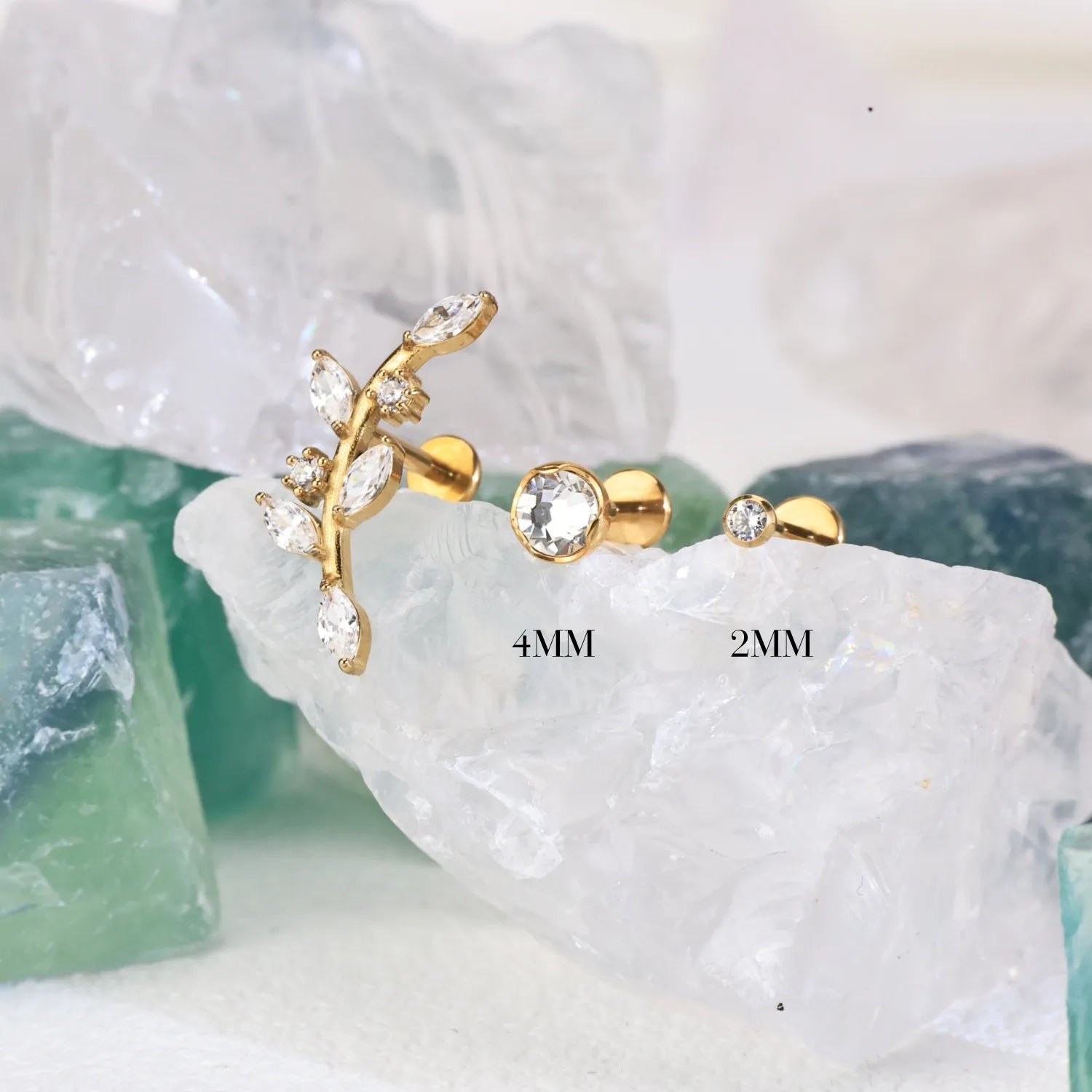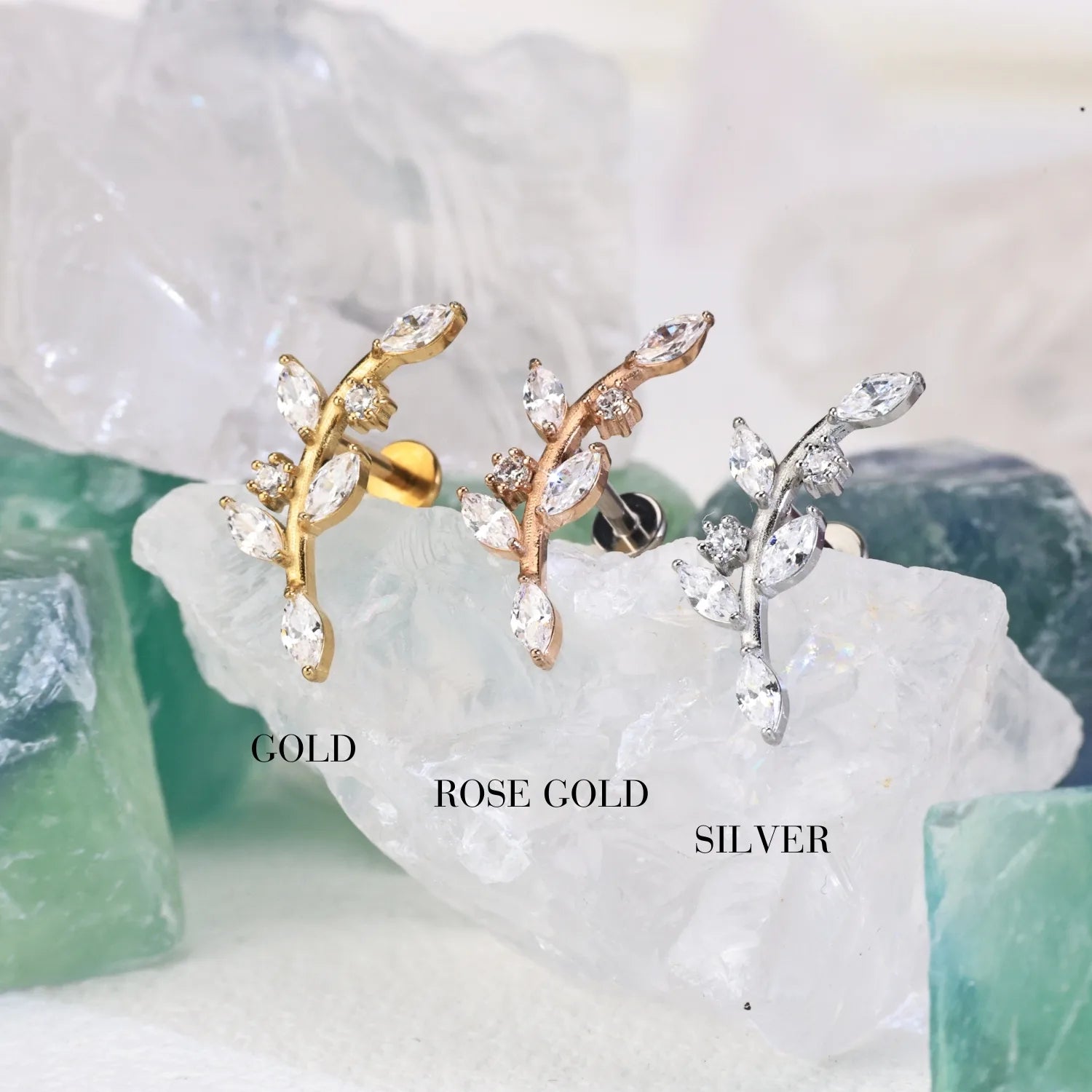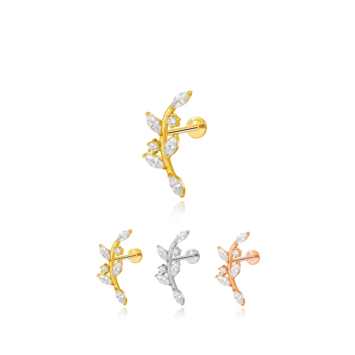 Crafted with a 316L surgical steel front piece and paired with an implant-grade titanium back post, this piece is a feminine, statement-making beauty — elegant, eye-catching, and made to shine.