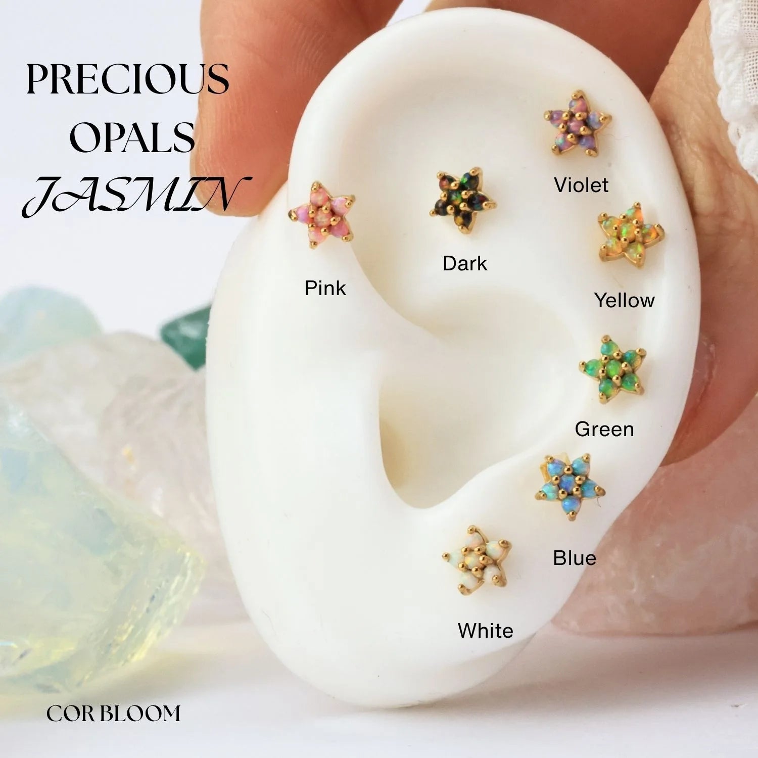 Dark Iridescent Gemstone Jasmine Flower Flat Back Stud