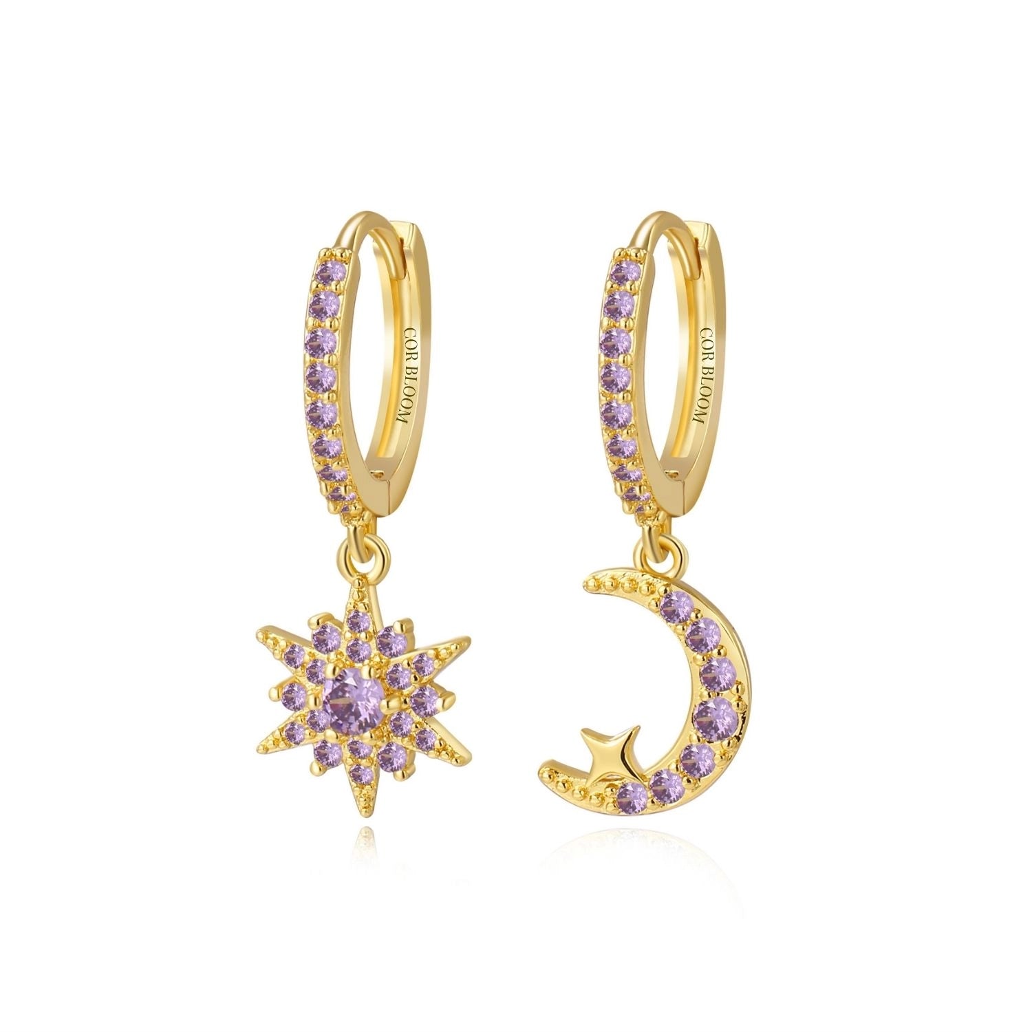 Estelle Crescent Moon & Guiding Star Hoop Earrings - Amethyst