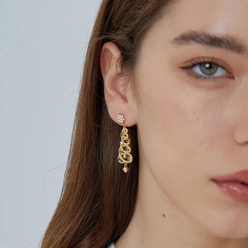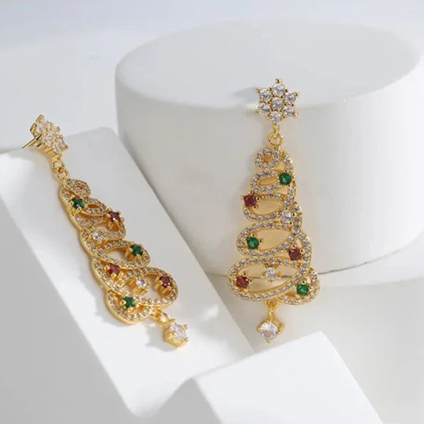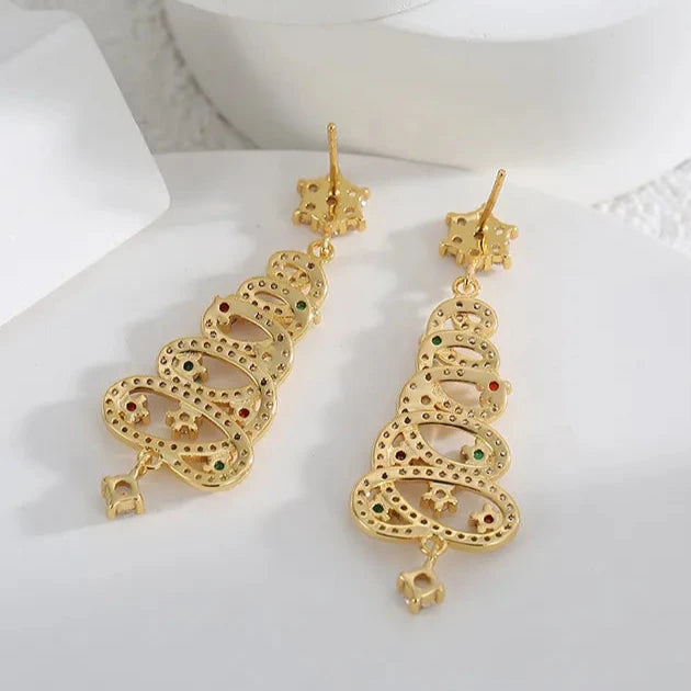 These Festive Christmas Tree Drop Earrings are a delightful and whimsical accessory that captures the spirit of the holiday season with a touch of elegance. These earrings are designed to resemble miniature Christmas trees, showcasing the iconic shape and elements associated with the festive holiday in a dangling or drop style.