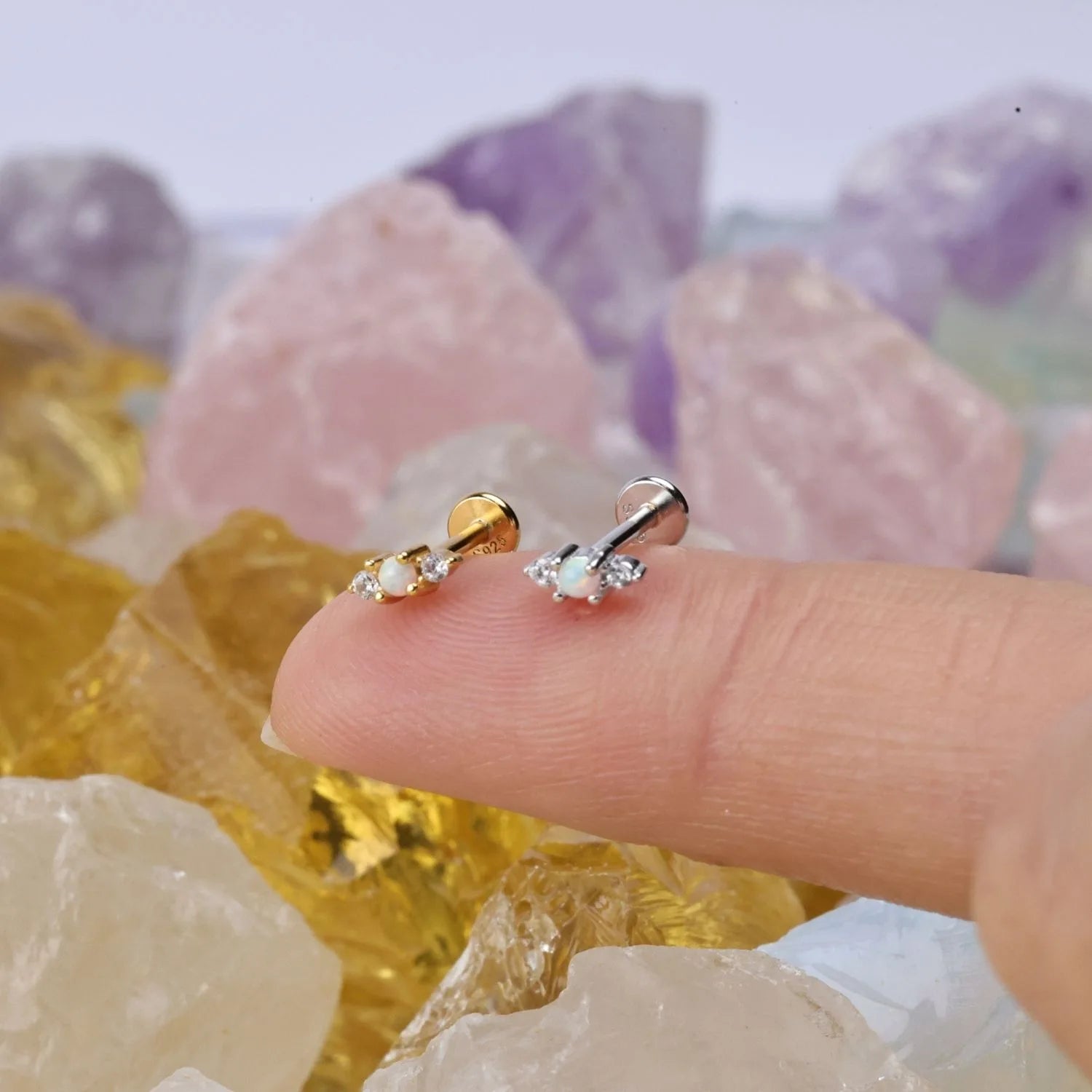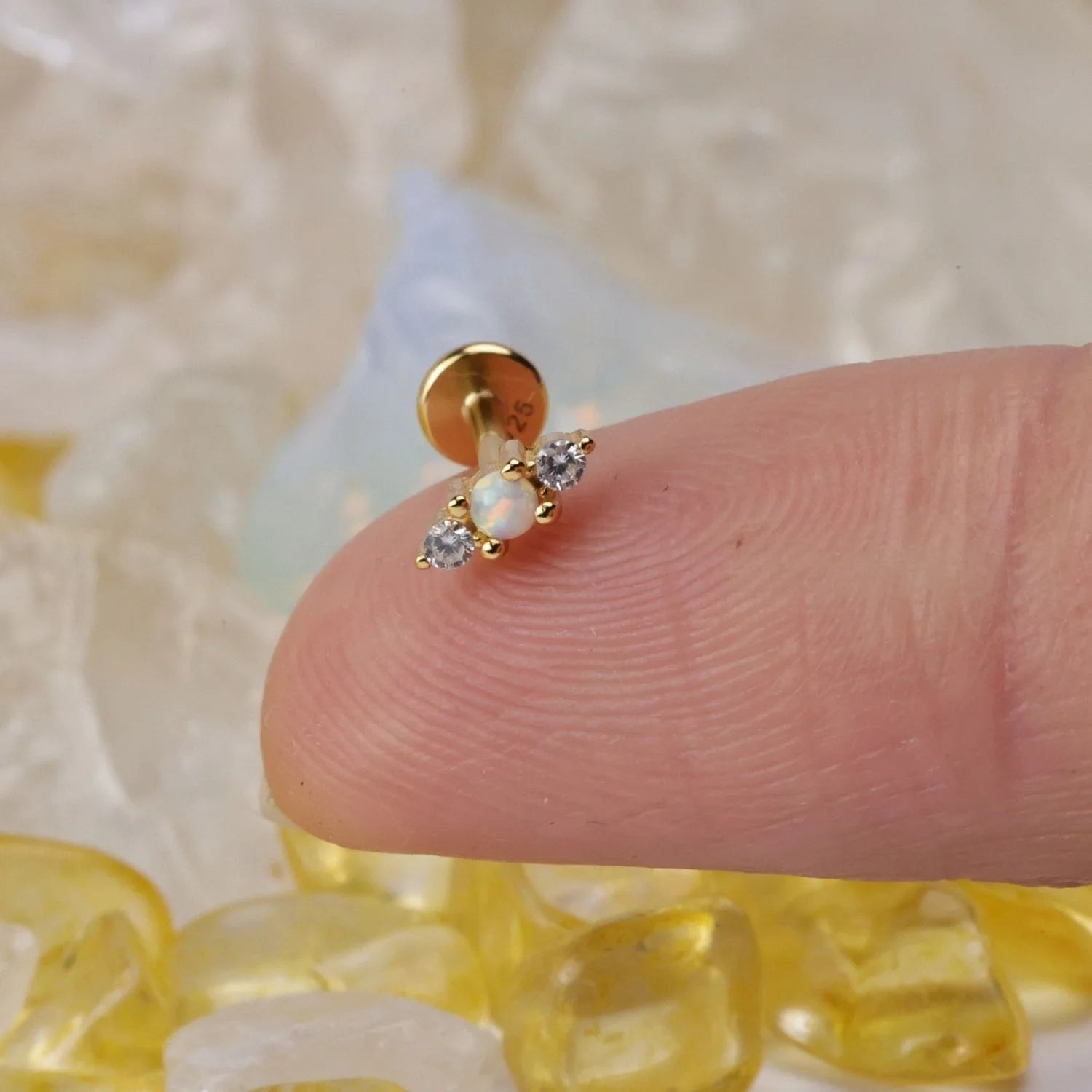 Delicately charming and adaptable, this opal labret piercing features a simple push-pin style for effortless wear.