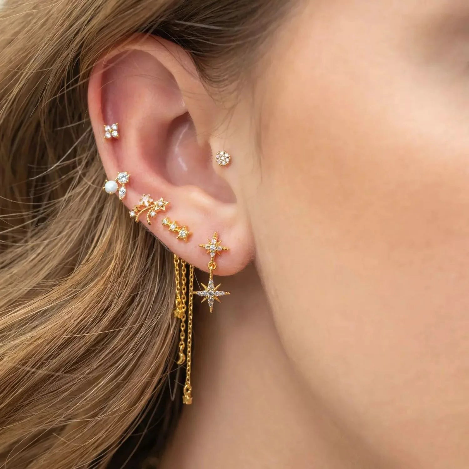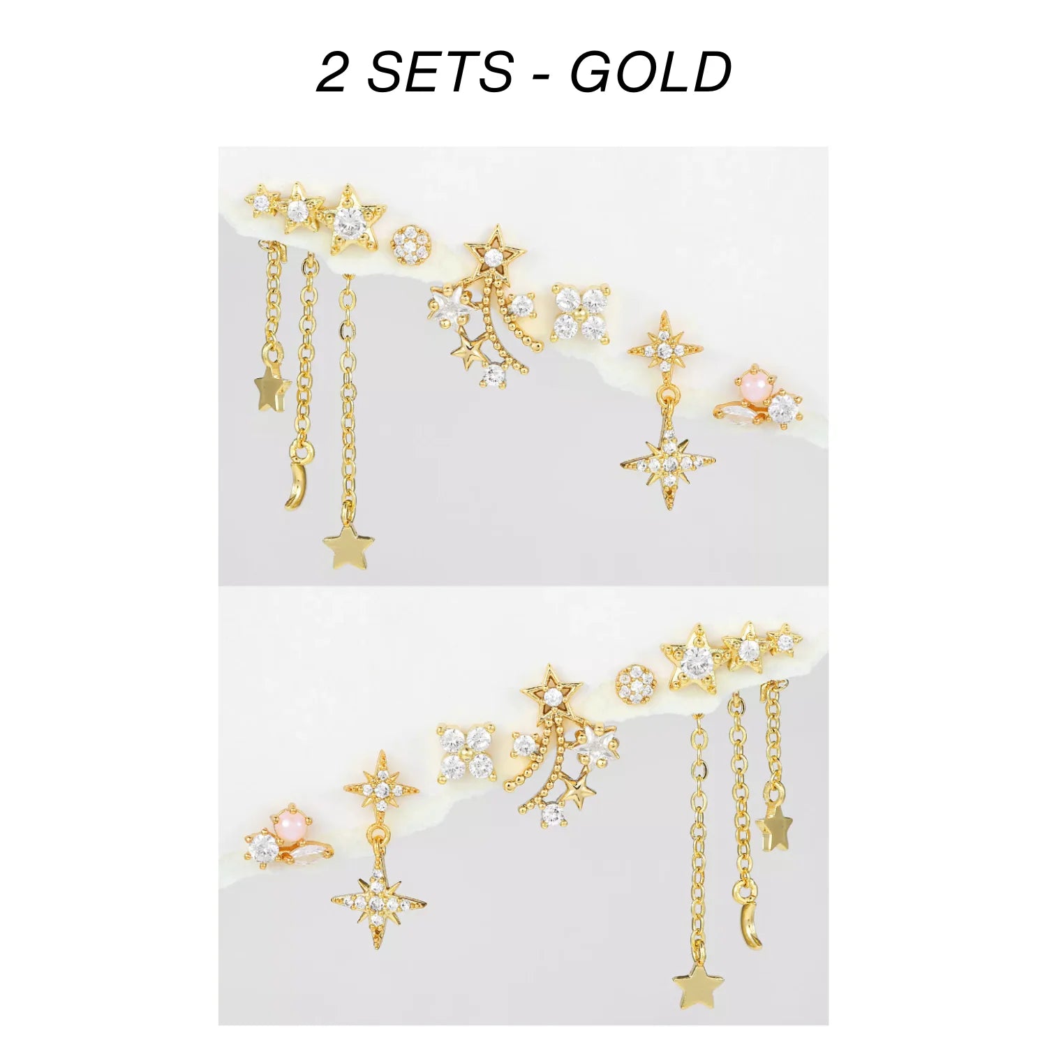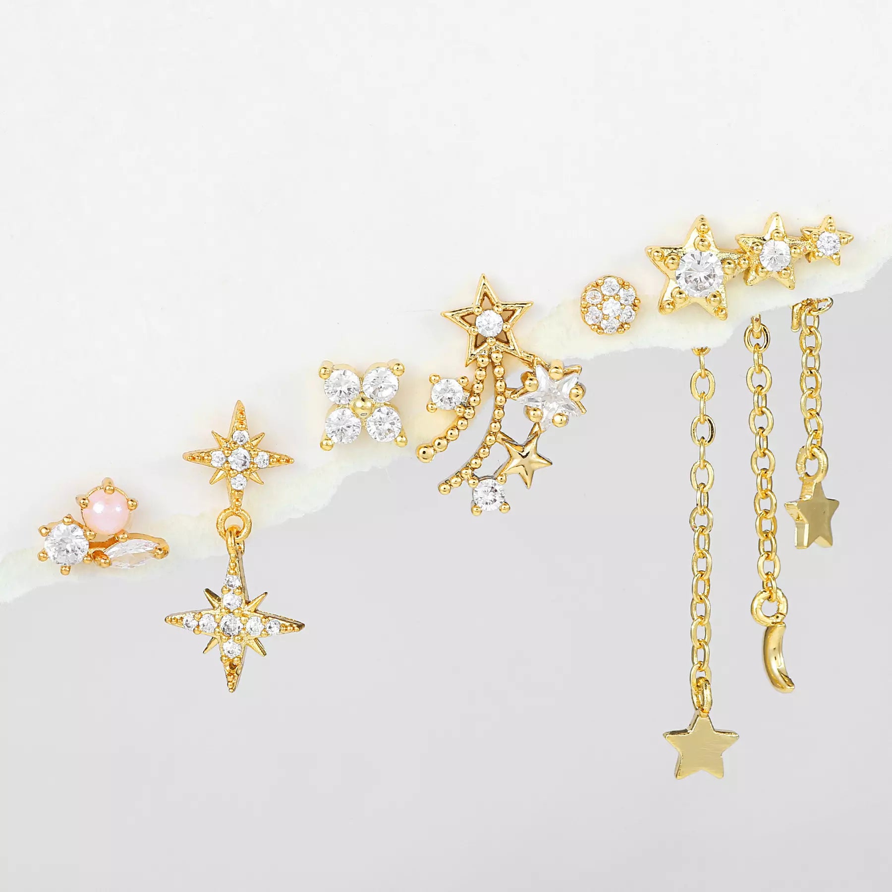 Sparkle your way to the stars with our Journey To The Star Earring Set! These beautiful stud earrings add the perfect touch of shine to your ear stack, featuring a post with butterfly closures. Get the look for a fraction of the price without compromising on style.