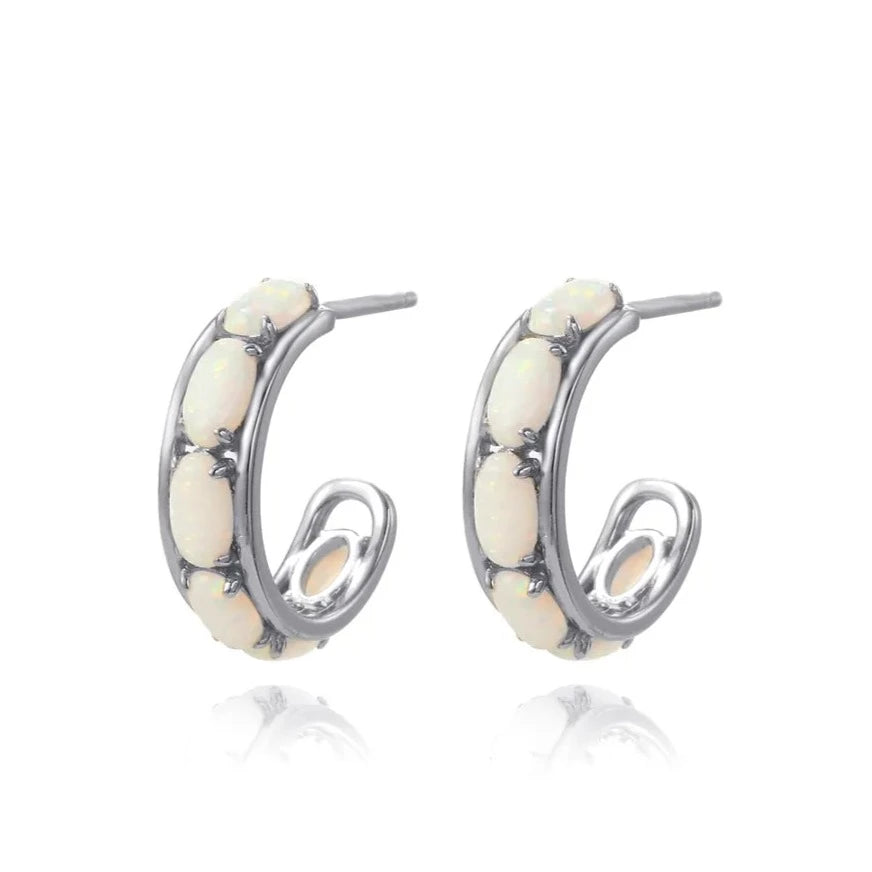 Luxe White Opal Stone Huggie Earrings