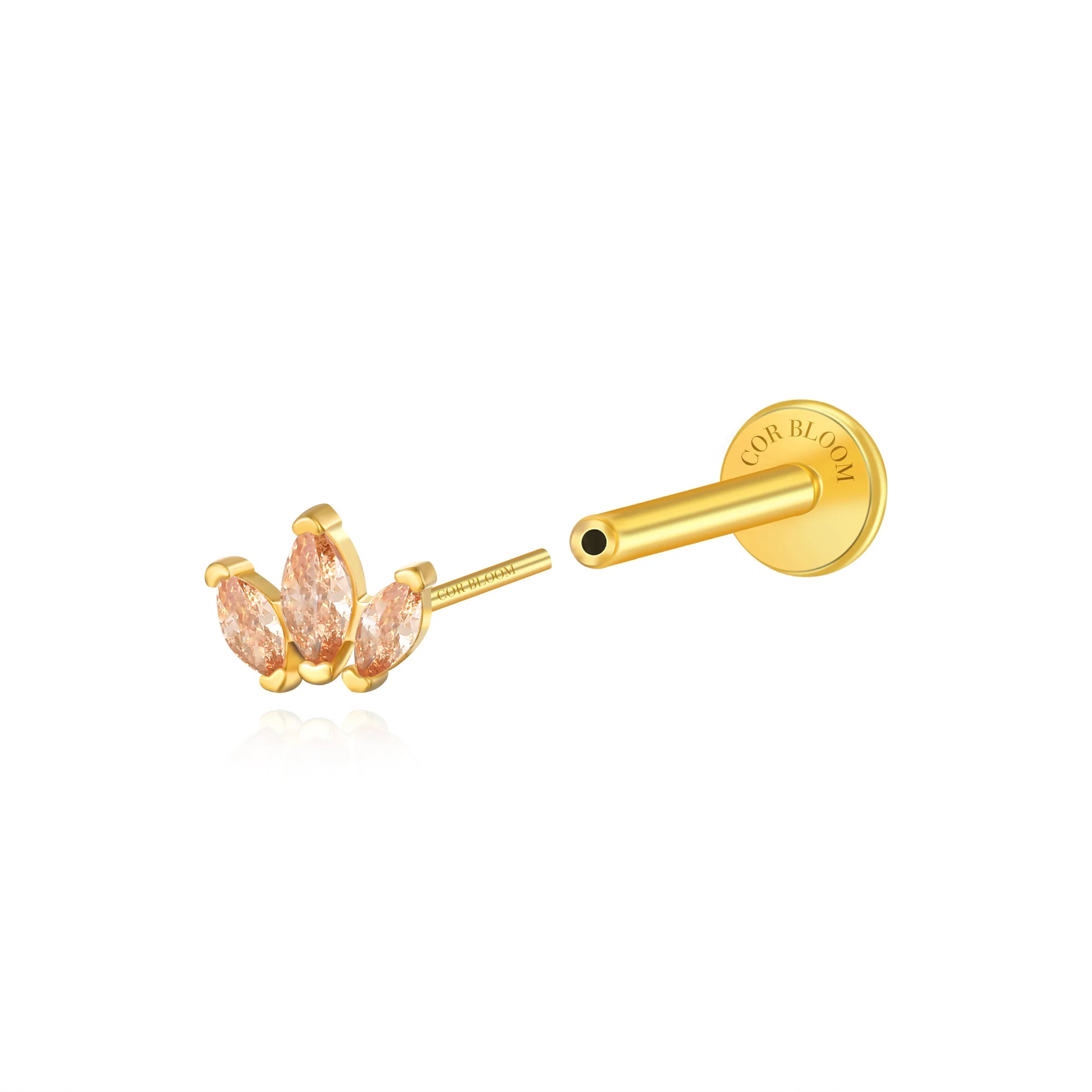 Myla Champagne Three-Petal Flat Back Stud