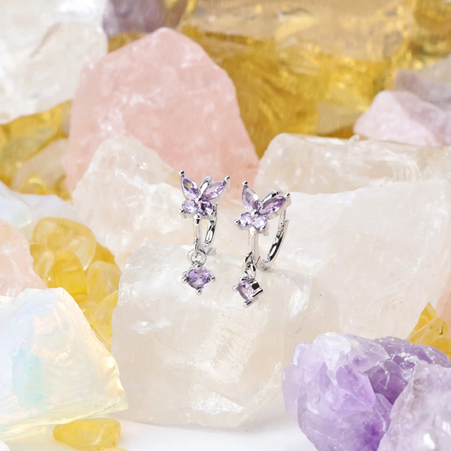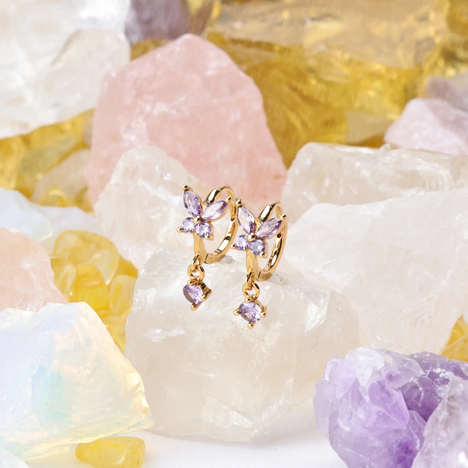 Indulge in the exquisite elegance of our Nefeli Butterfly Huggie Earrings. Crafted with a stunning red garnet butterfly with a sparkling dangling CZ stone, these earrings will add a touch of sophistication and luxury to any outfit. Elevate your style with these beautiful huggies.