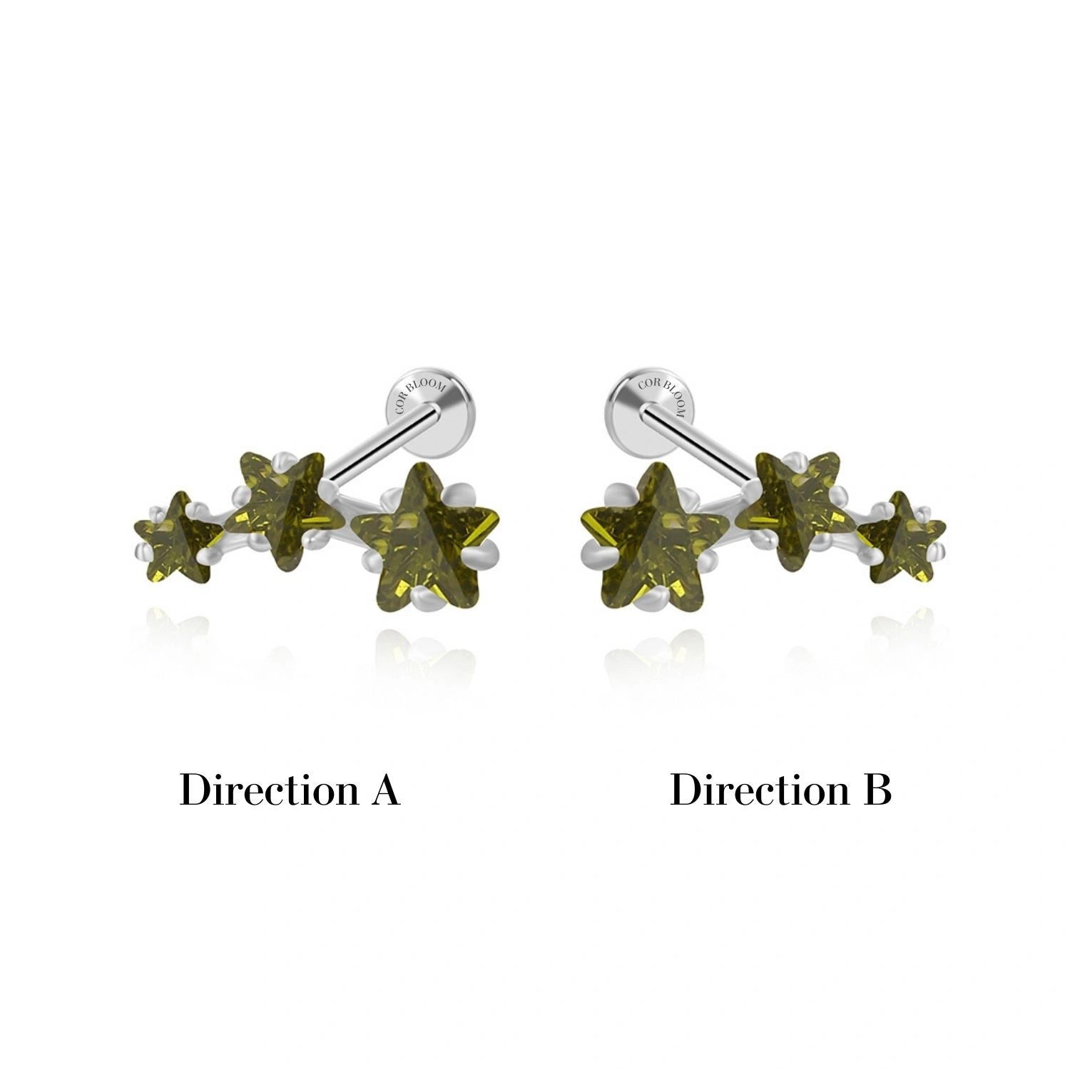 Peridot Trio Star Cluster Flat Back Piercing Stud