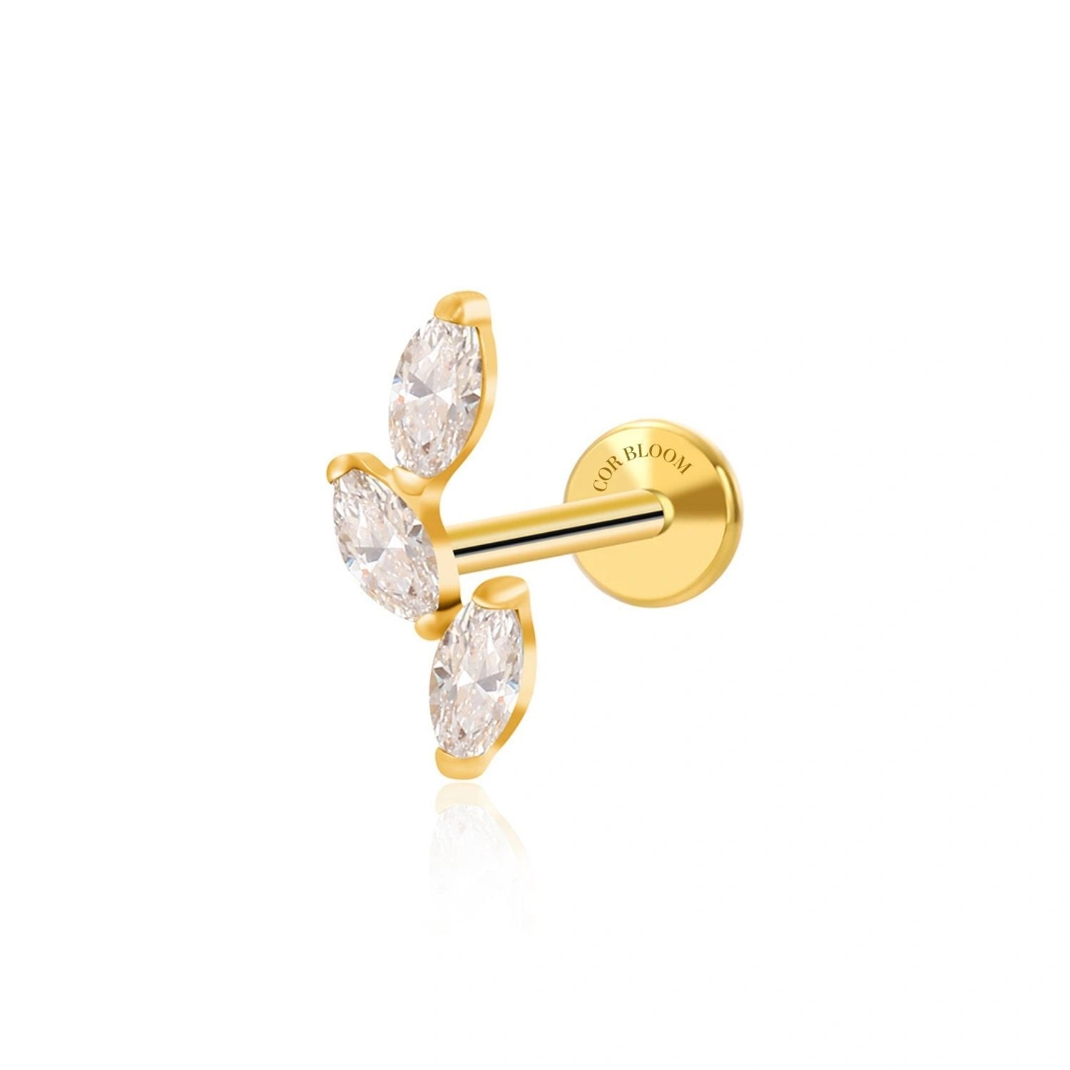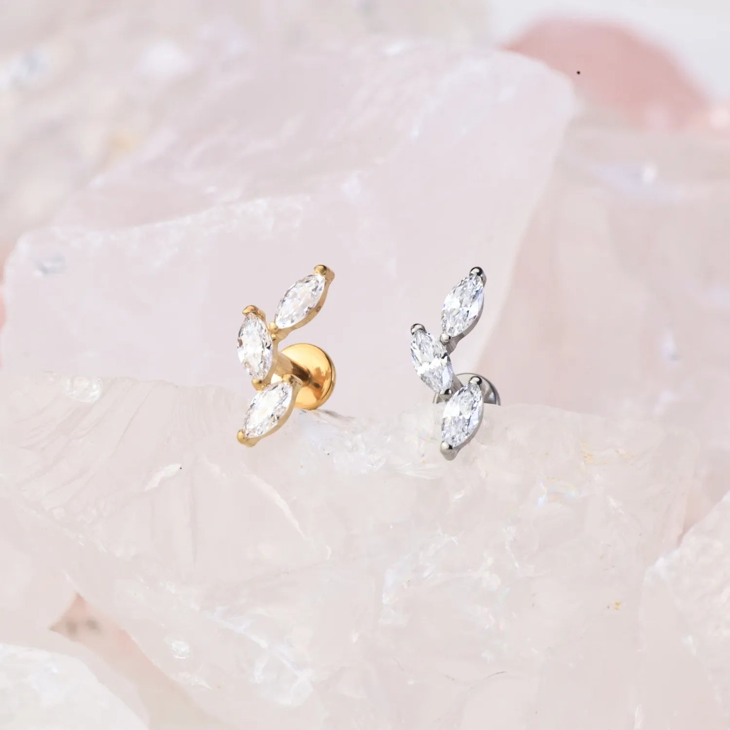 This small crystal leaf catches the light beautifully, making it the perfect accent piece for lobe, helix, or conch piercings. Designed for both comfort and sparkle, it’s a subtle statement that elevates any look.