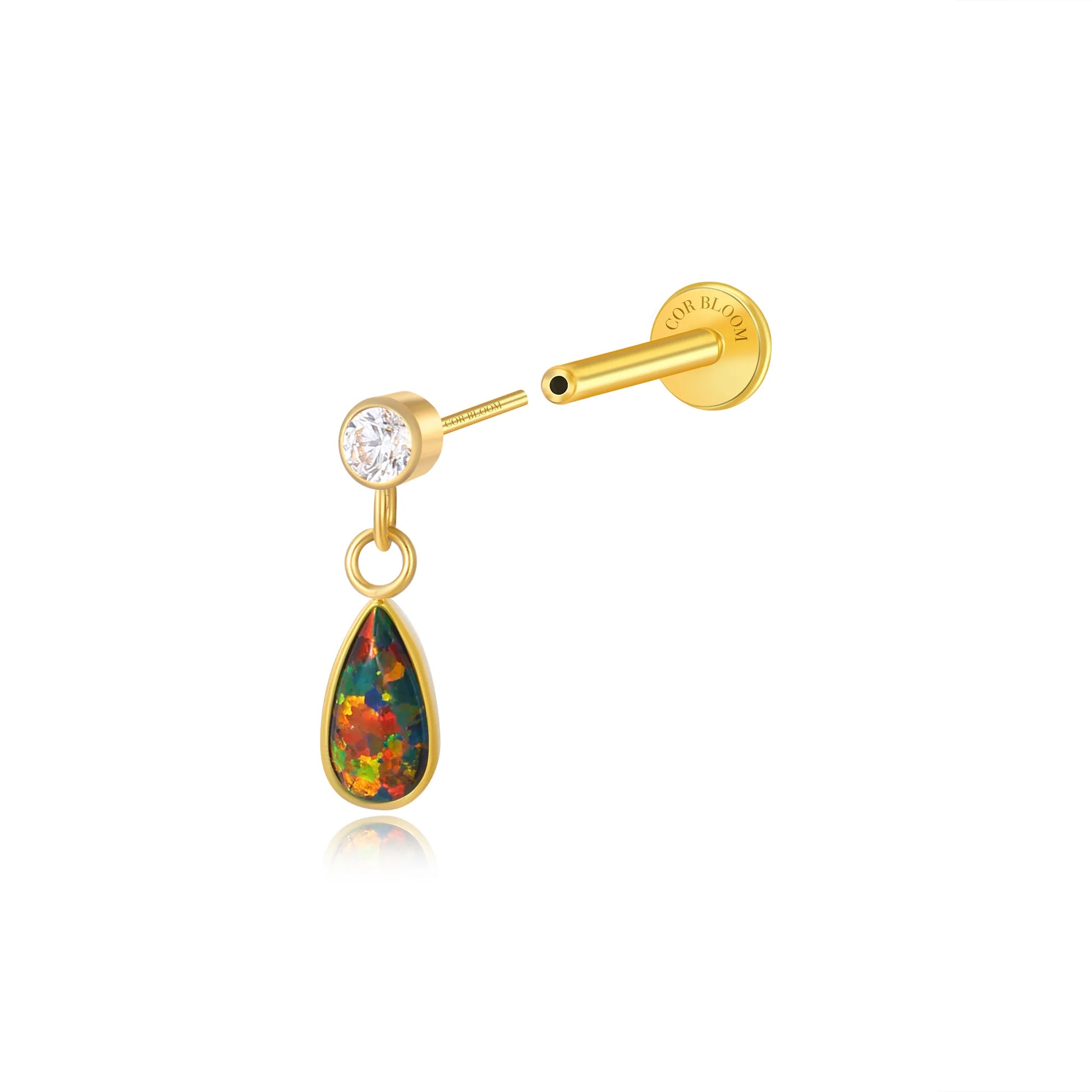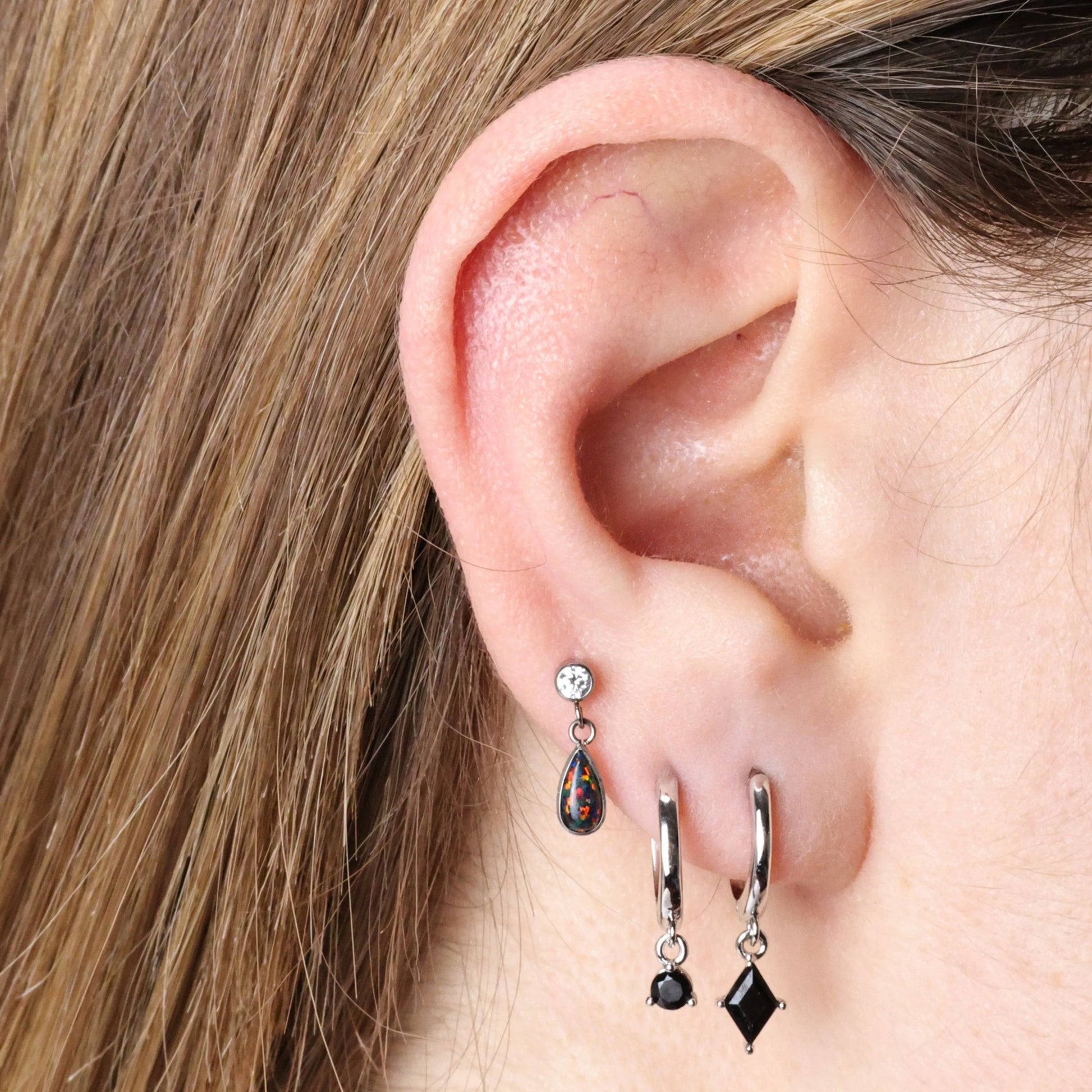 Add a touch of elegance and uniqueness to any outfit with our Titanium Adara Black Opal Dangling Stud. Its beautiful black opal adds an element of sophistication while the dangling design adds a playful touch. Elevate your style with this one-of-a-kind piece.