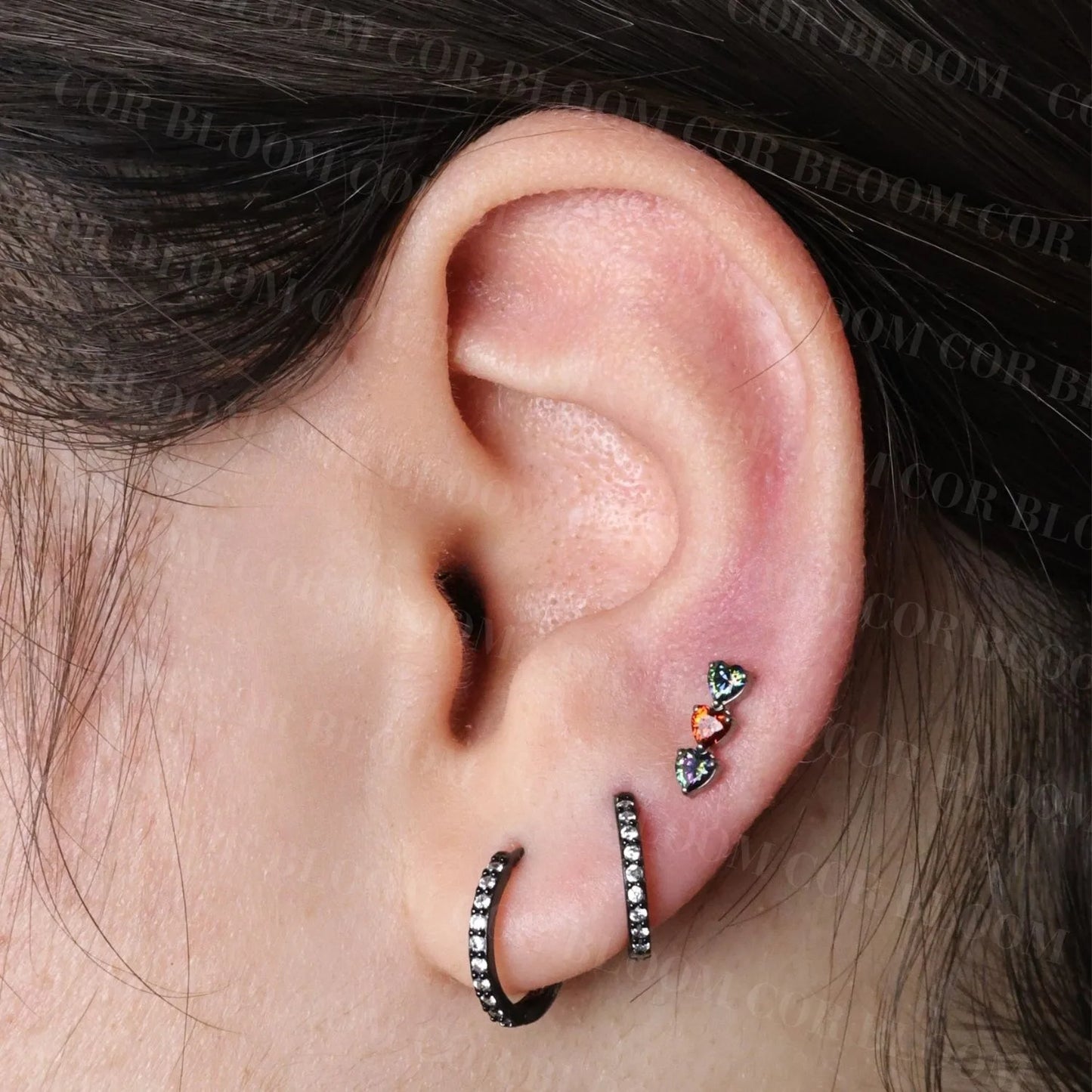Titanium Adelpha Trio Heart Stud - Midnight Flame