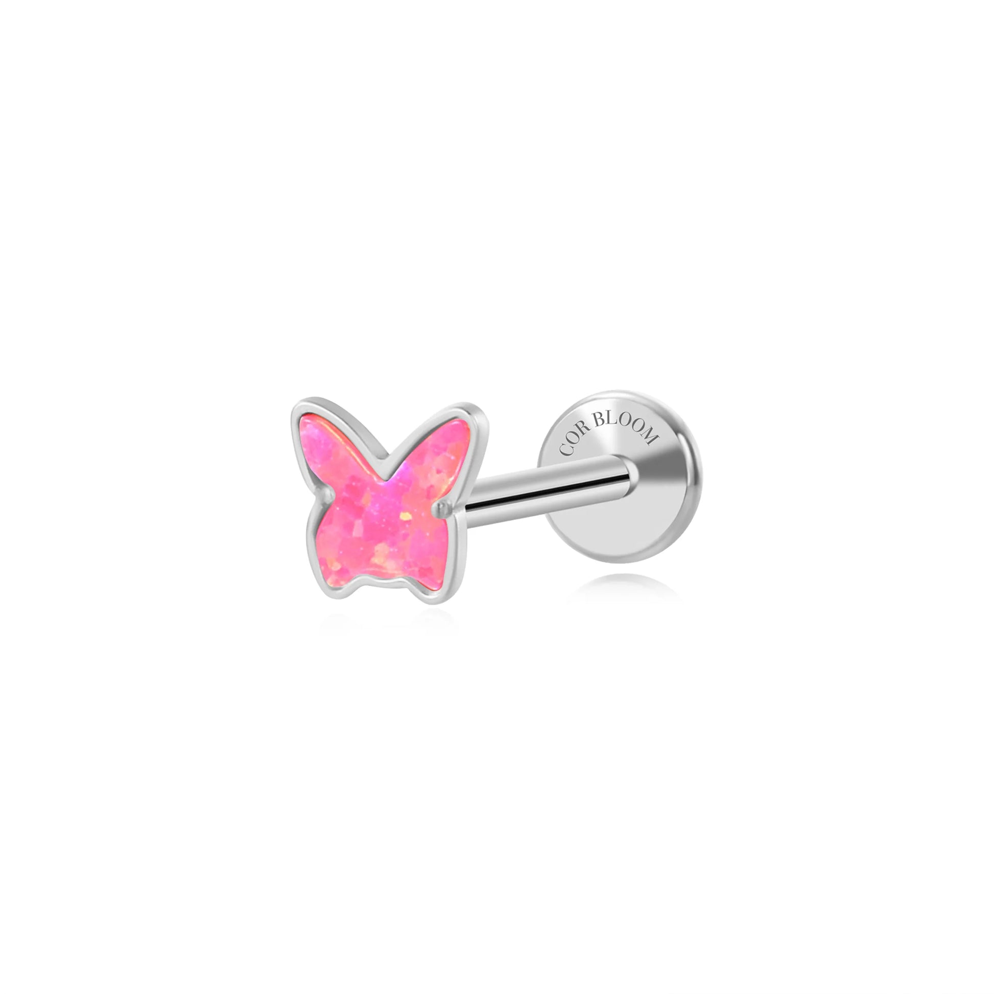 Titanium Aglais Pink Opal Butterfly Flat Back Stud