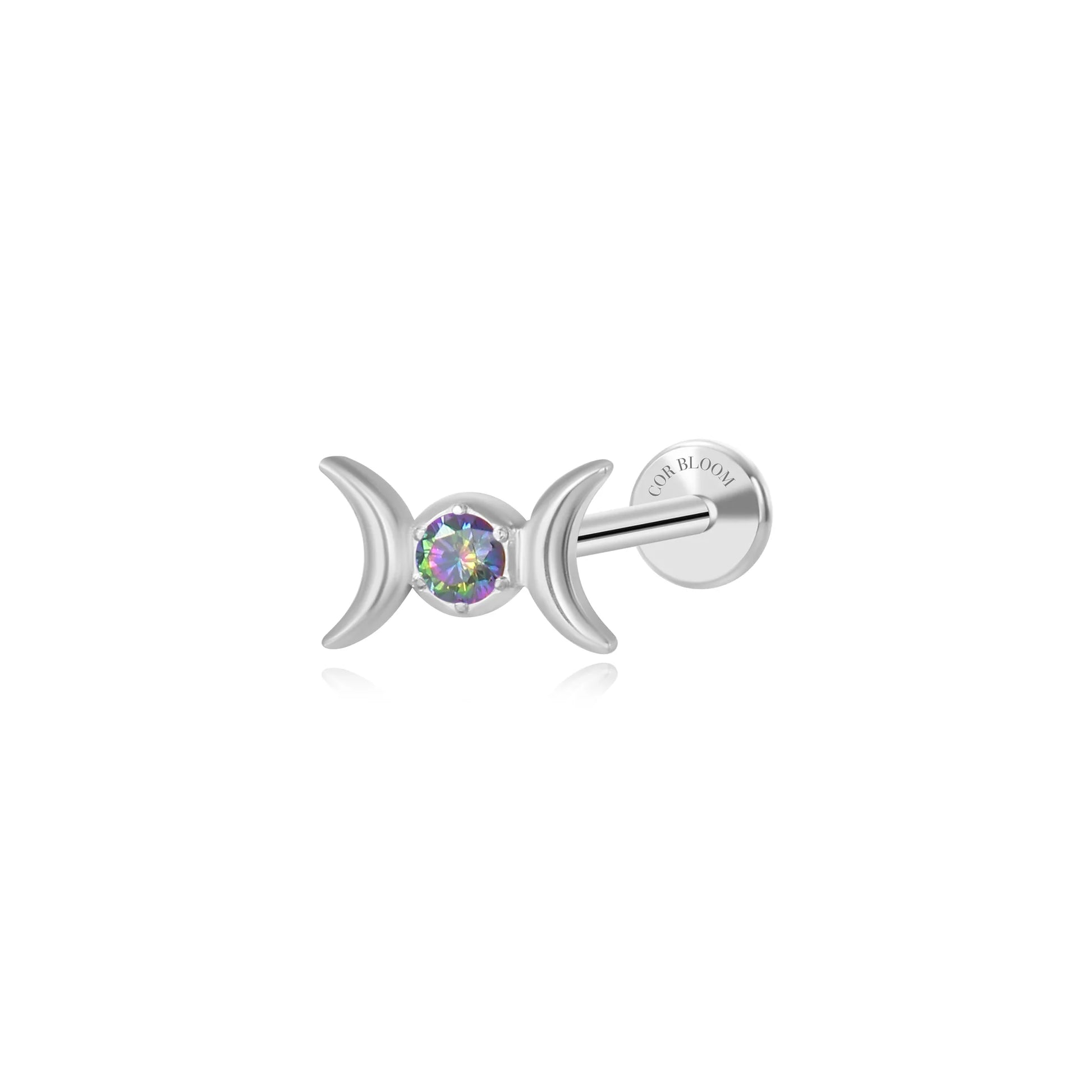 Titanium Amaryllis Dark Iridescent Moon Phases Stud