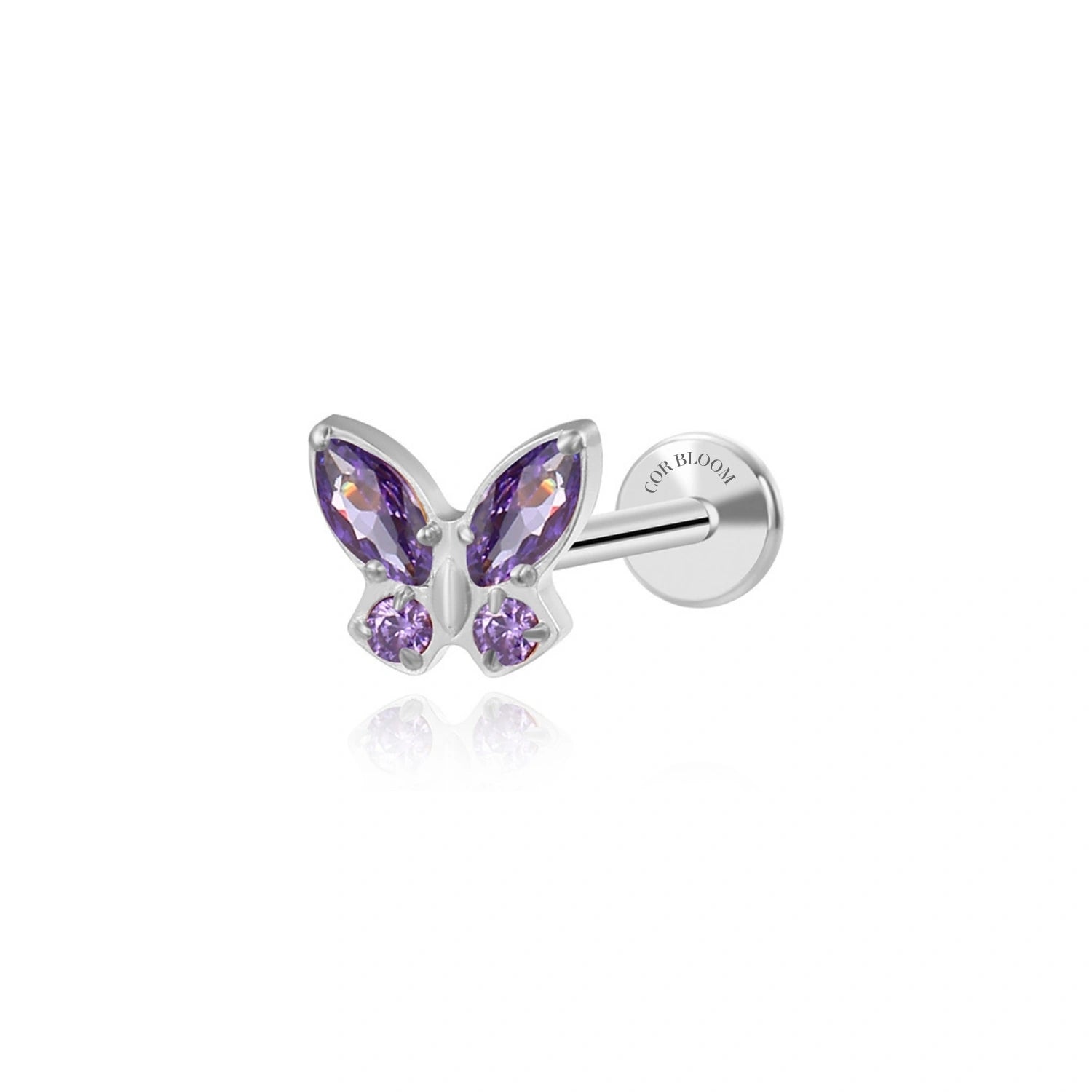 Titanium Amethyst Butterfly Flat Back Piercing Stud