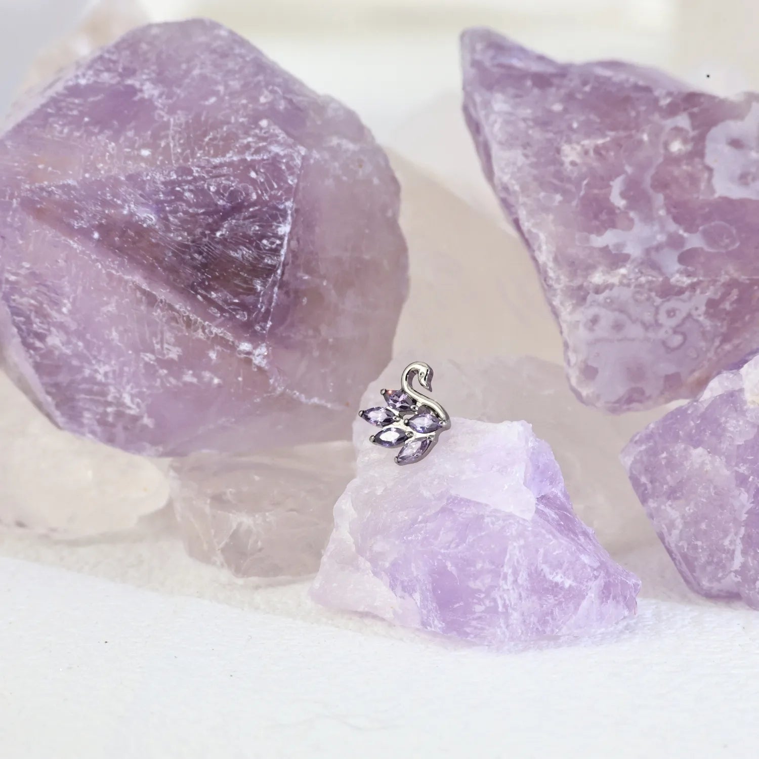Titanium Akosua Mini Duo Petal Amethyst Stud
