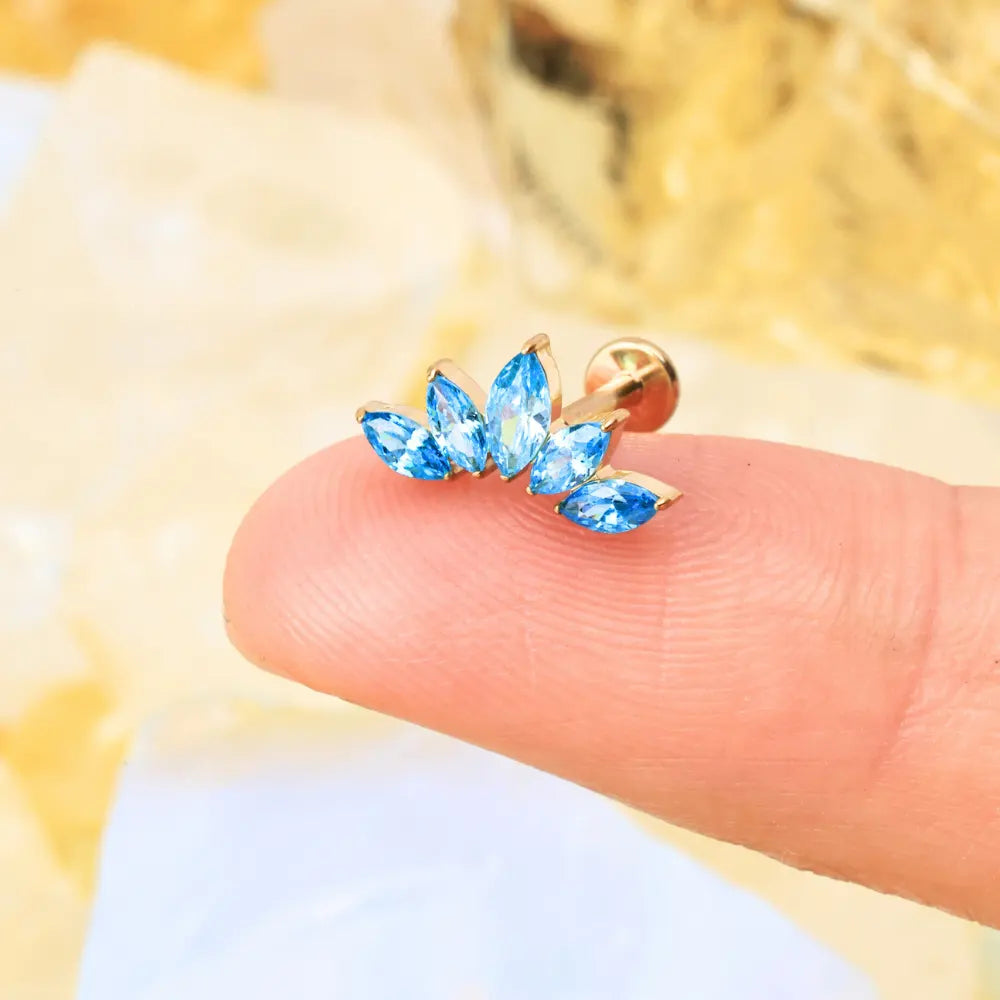 Titanium Aphrodite Aquamarine Crown Push Pin Stud