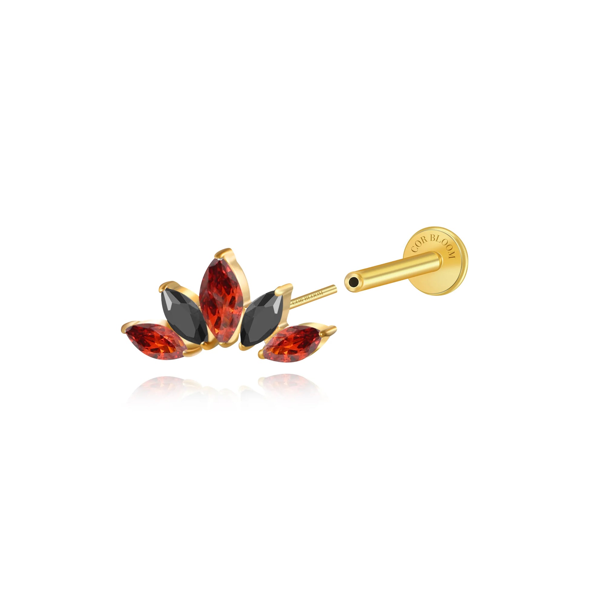 Titanium Aphrodite Black & Red Crown Push Pin Flat Back Stud - Night Queen