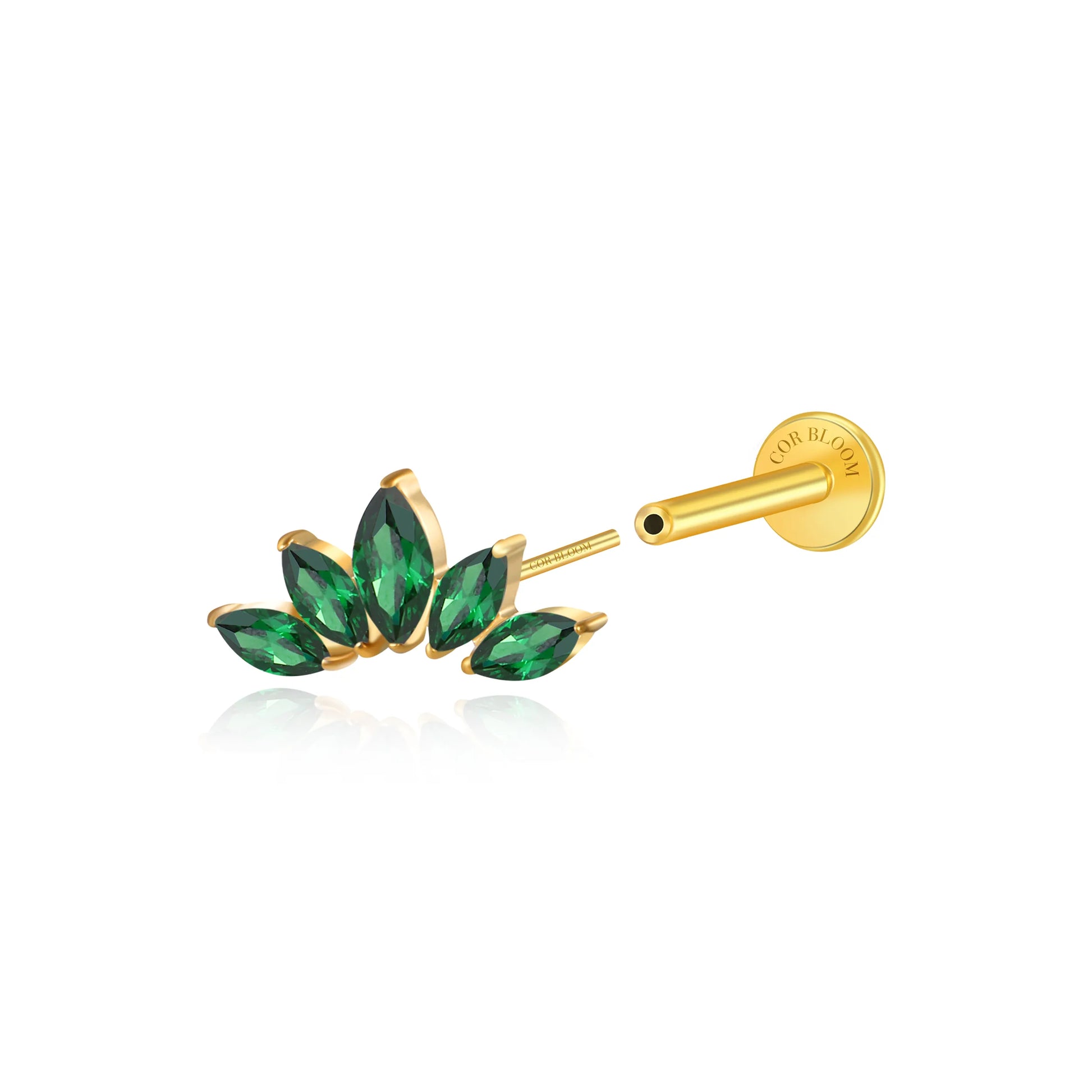 Titanium Aphrodite Green Emerald Crown Push Pin Stud
