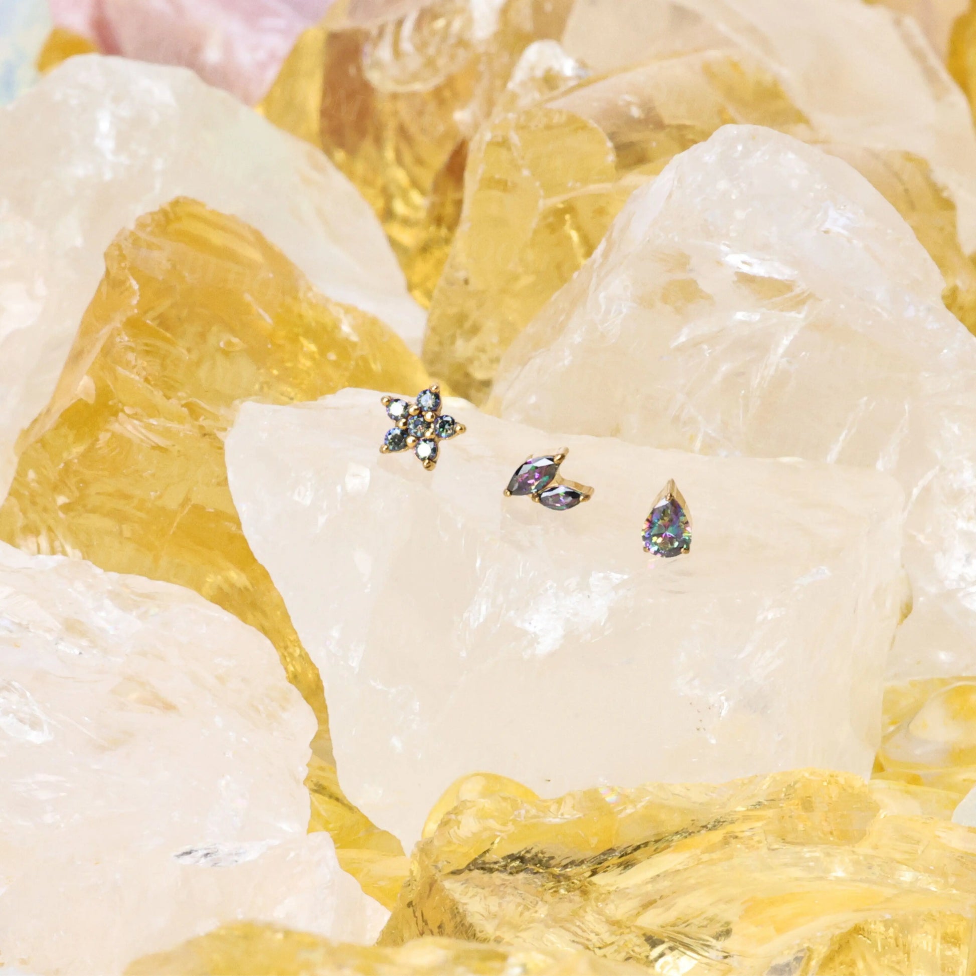 Titanium Edith Mini Duo Flat Back Stud - Dark Iridescent Gem