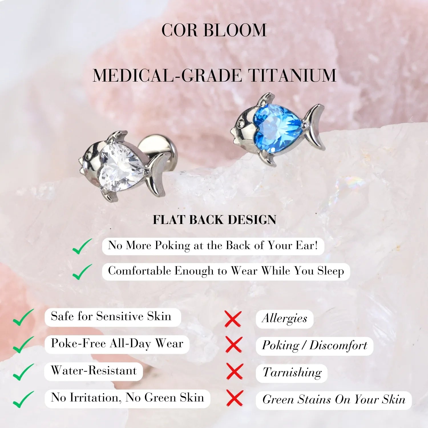 - Hypoallergenic and always nickel-free, safe for sensitive ears
