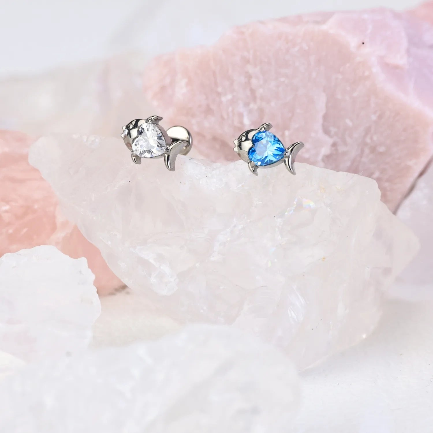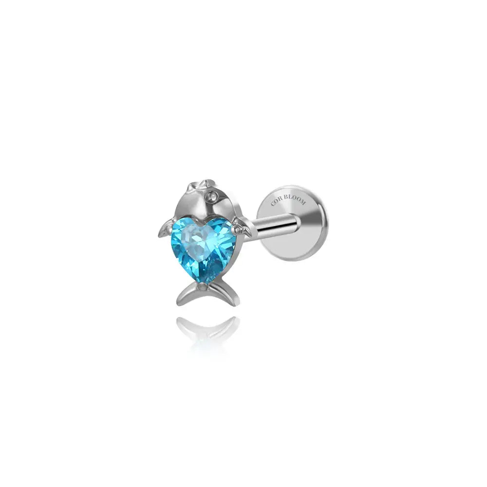 Titanium Heart Shape Aquamarine Tropical Fish Piercing Stud