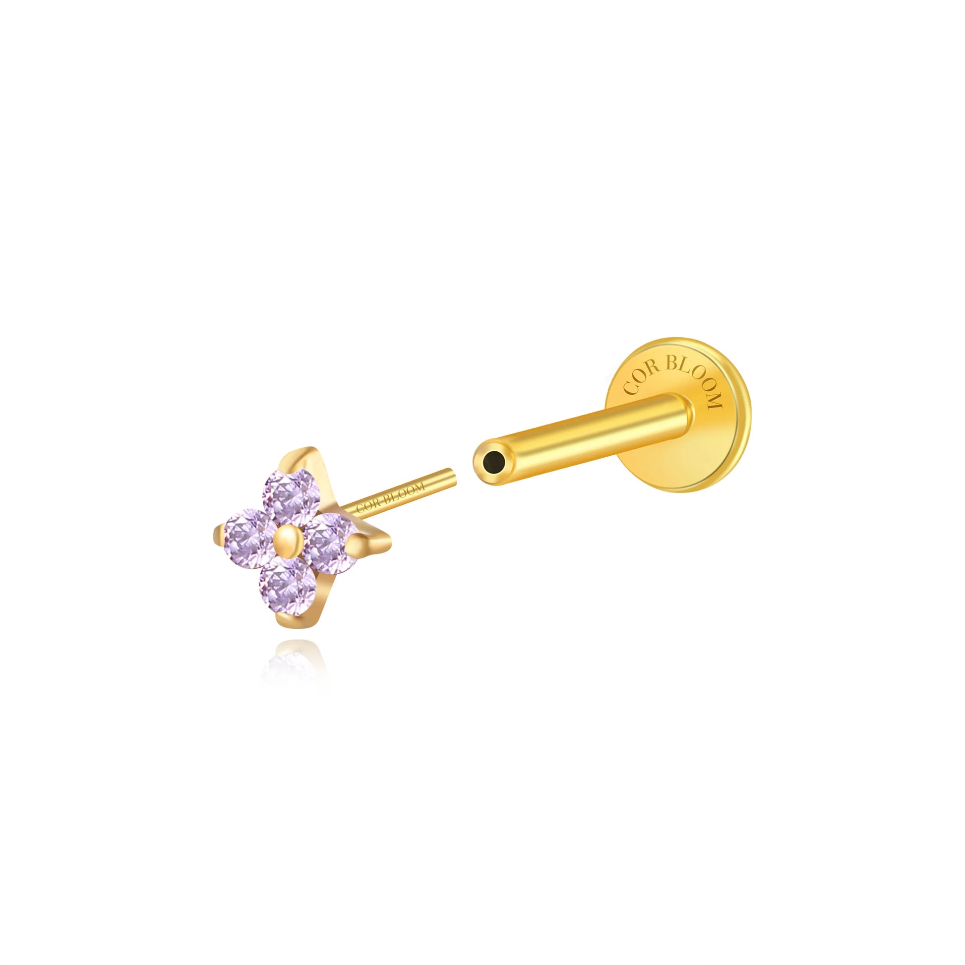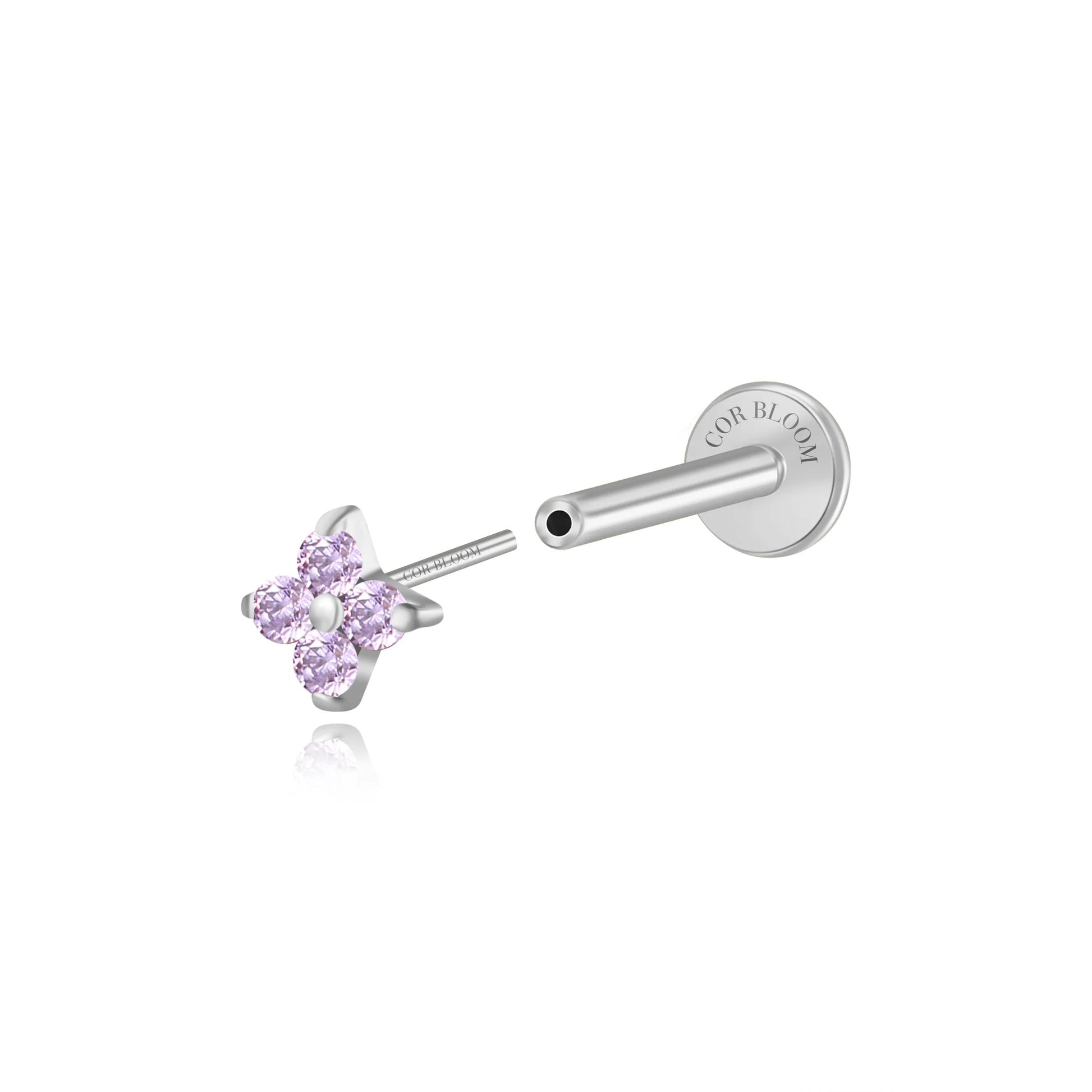 Titanium Aretha Small Amethyst Four-Leaf Clover Stud