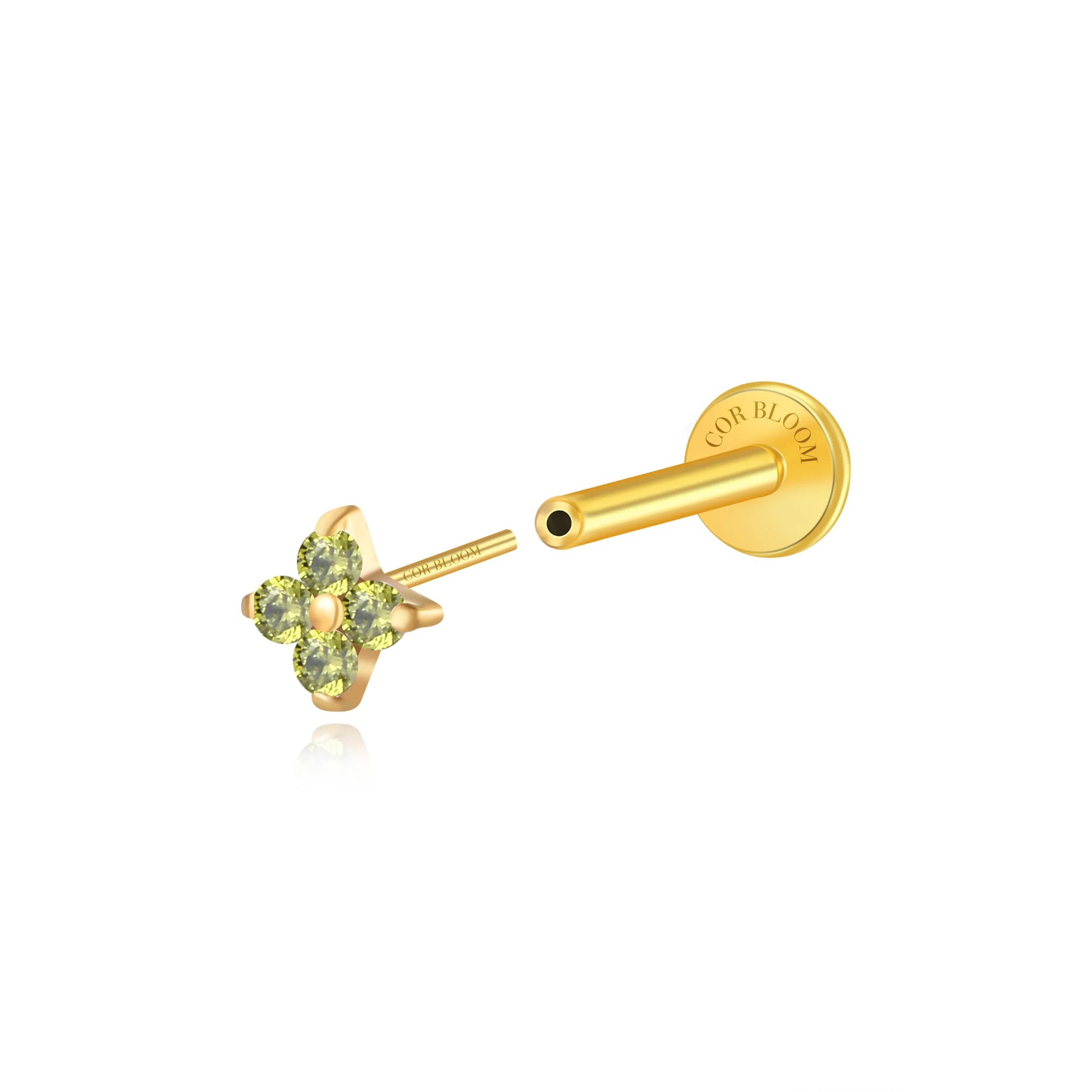 Titanium Aretha Small Peridot Four-Leaf Clover Stud