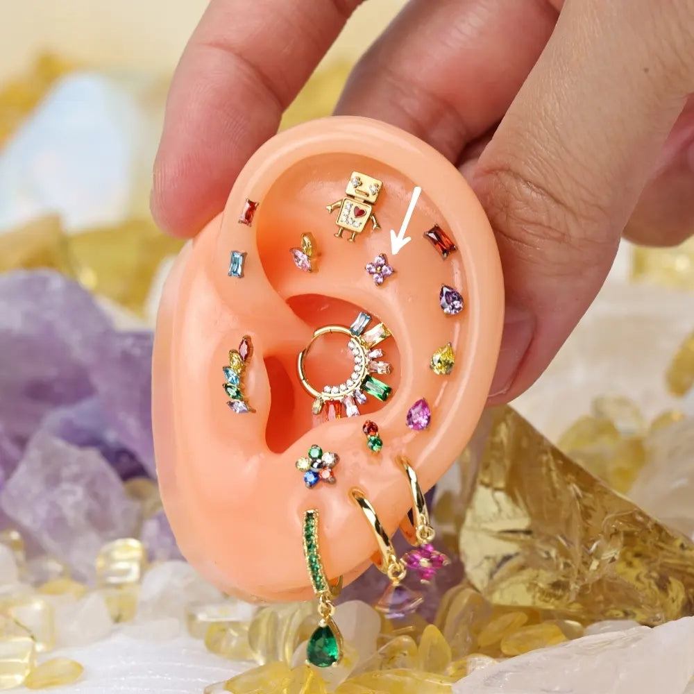 Titanium Dainty Little Diamond Flower Piercing Stud