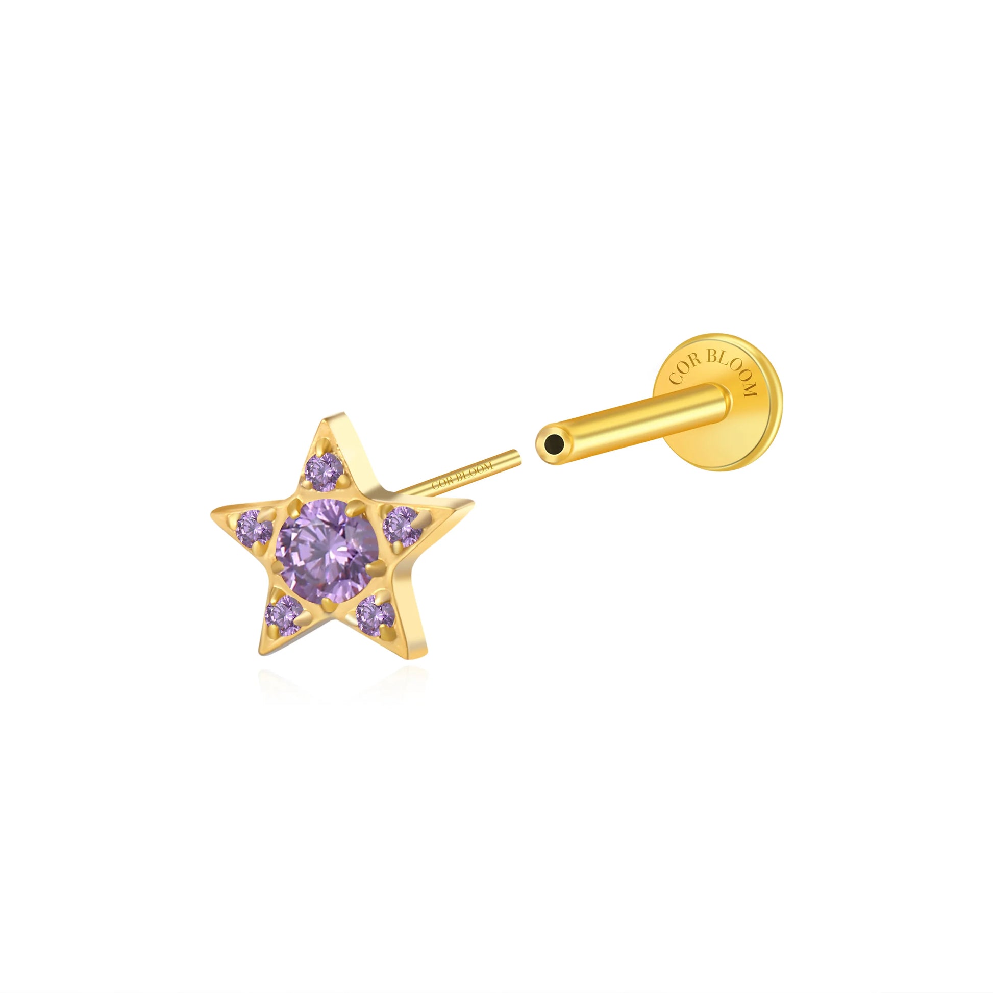 Titanium Astra Dainty Amethyst Star Flat Back Stud