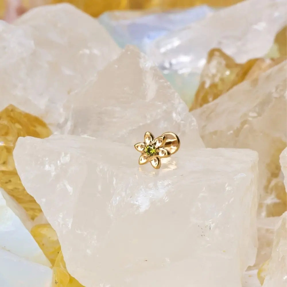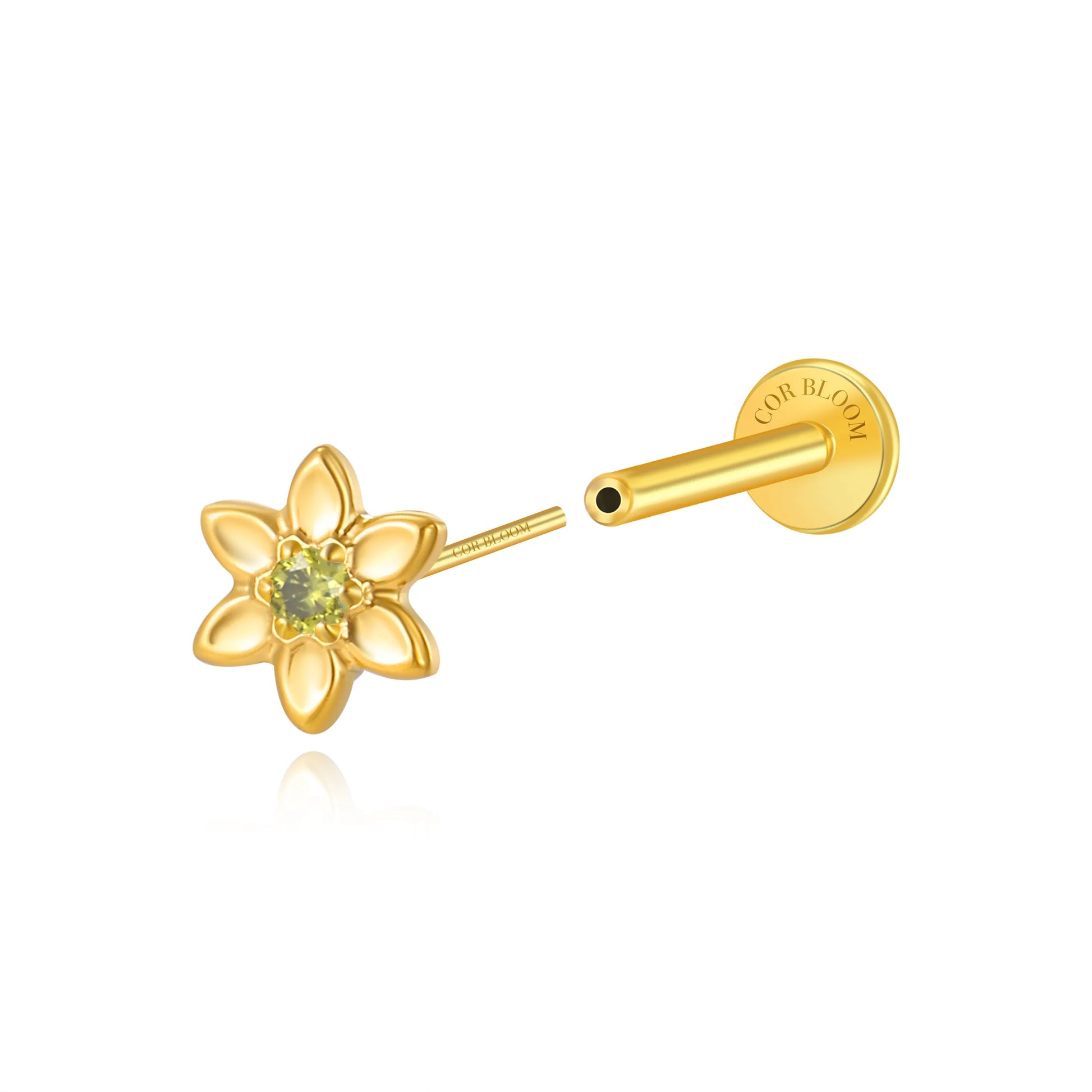 Titanium Azalea Dainty Peridot Flower Flat Back Stud