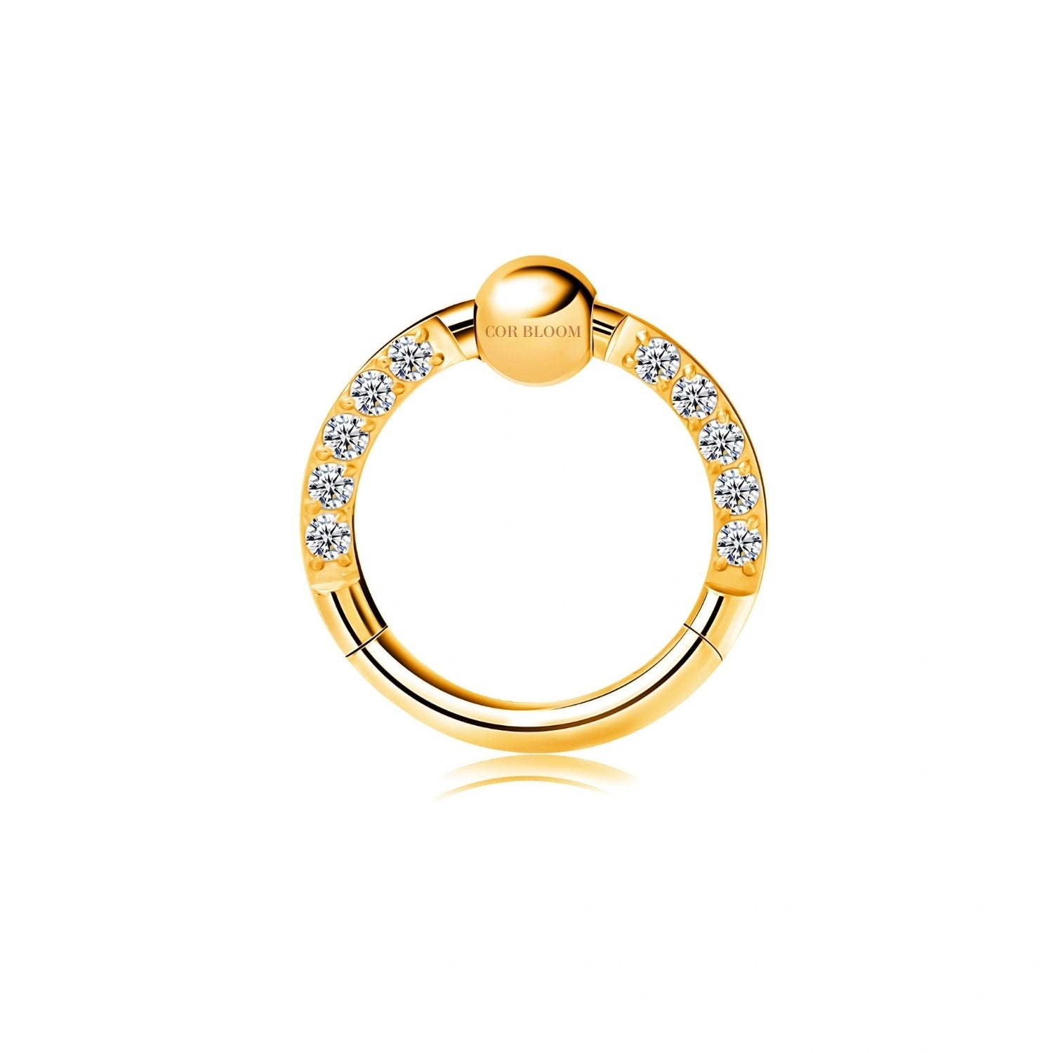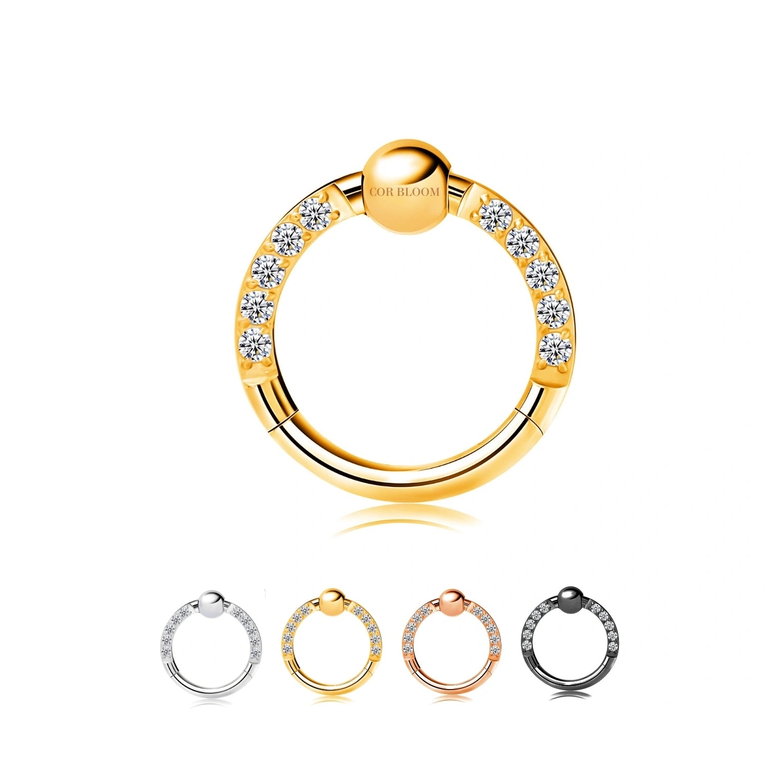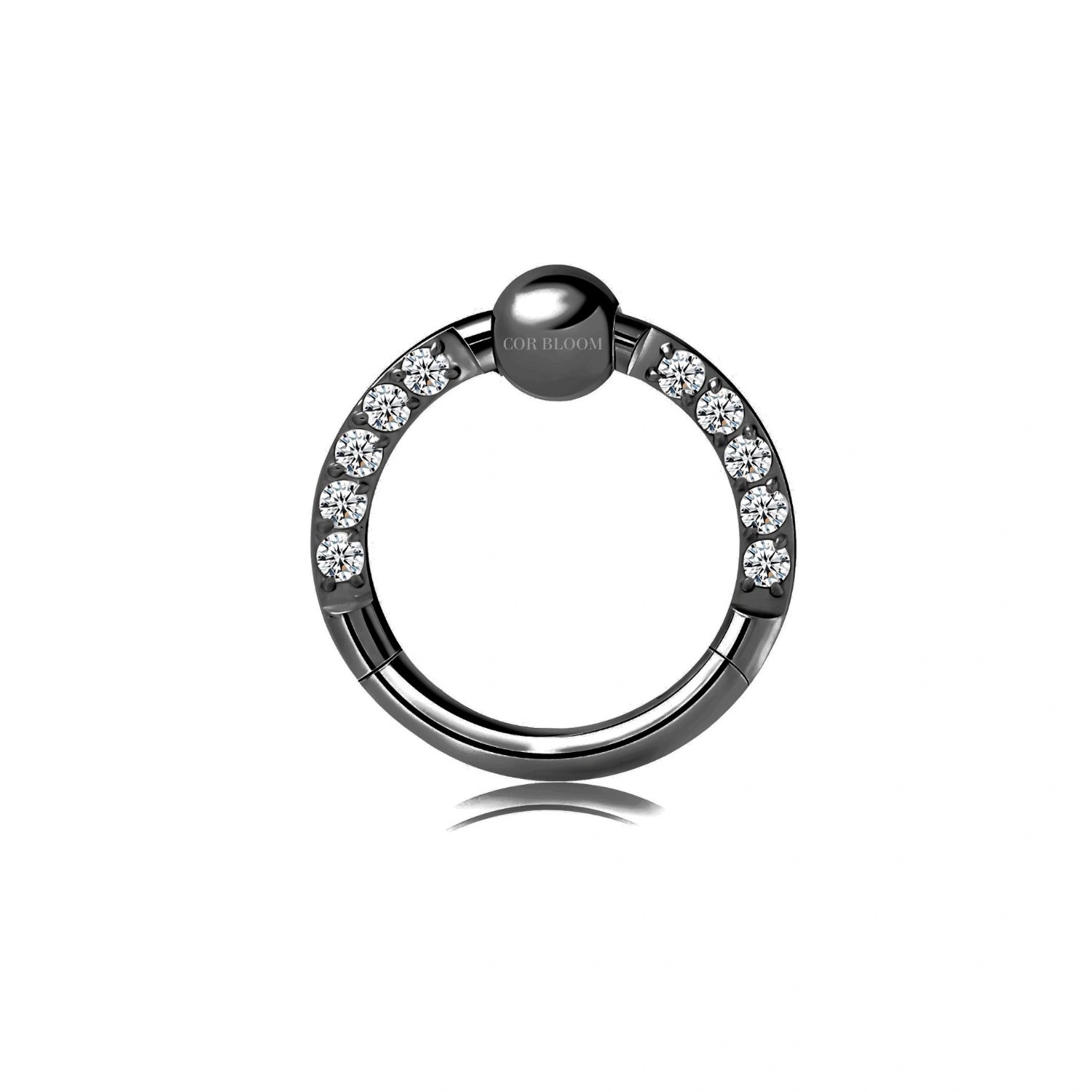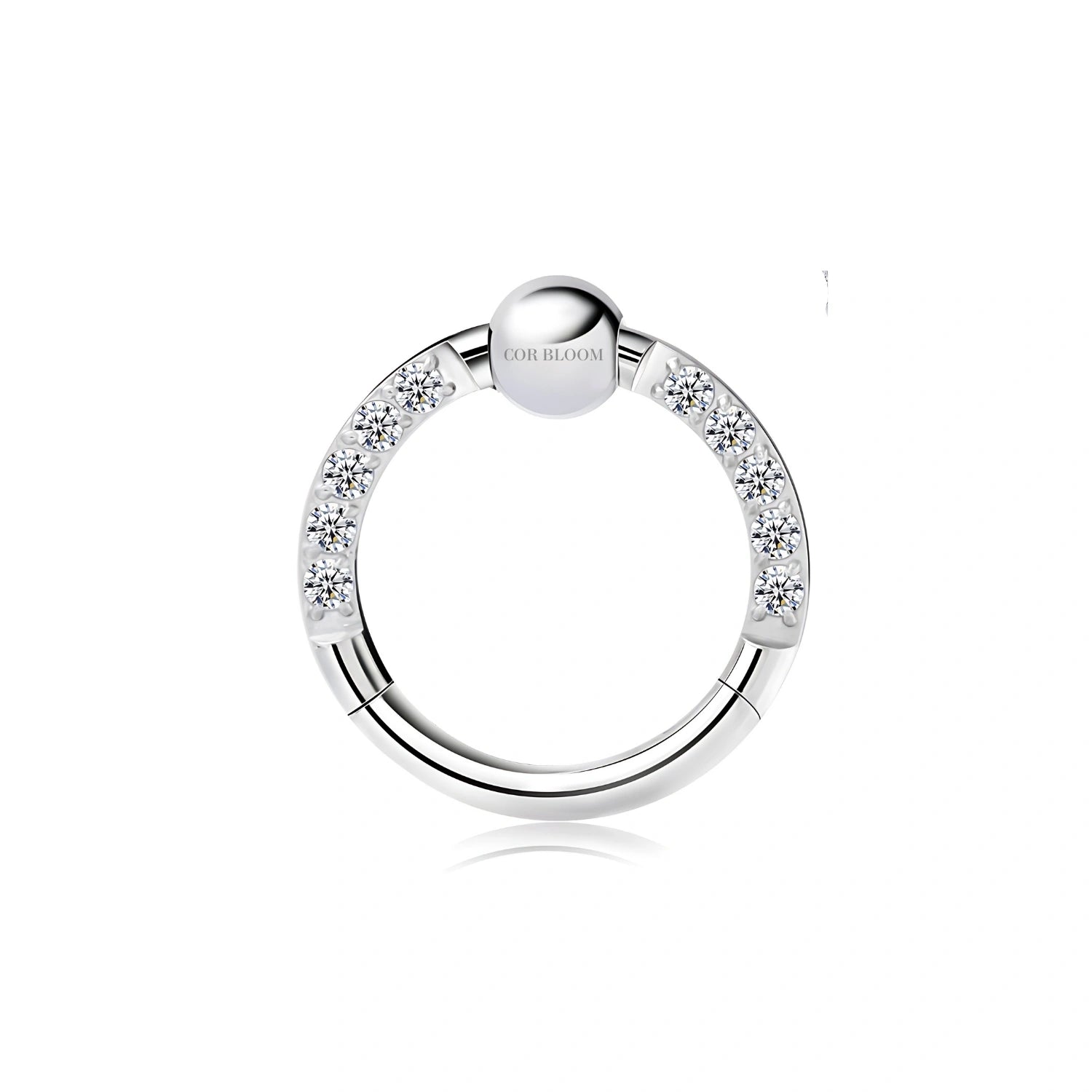 Elevate your style with our Titanium Basic Capri Septum Clicker. Its minimalistic design exudes elegance and versatility, perfect for wearing as a Daith Ring or Helix Hoop. Adorned with a sparkling diamond, this piece is a must-have for any fashion-forward individual.