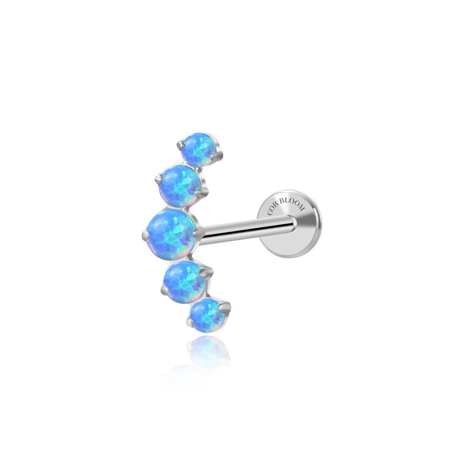 Titanium Blue Opal Five Stone Cluster Flat Back Stud