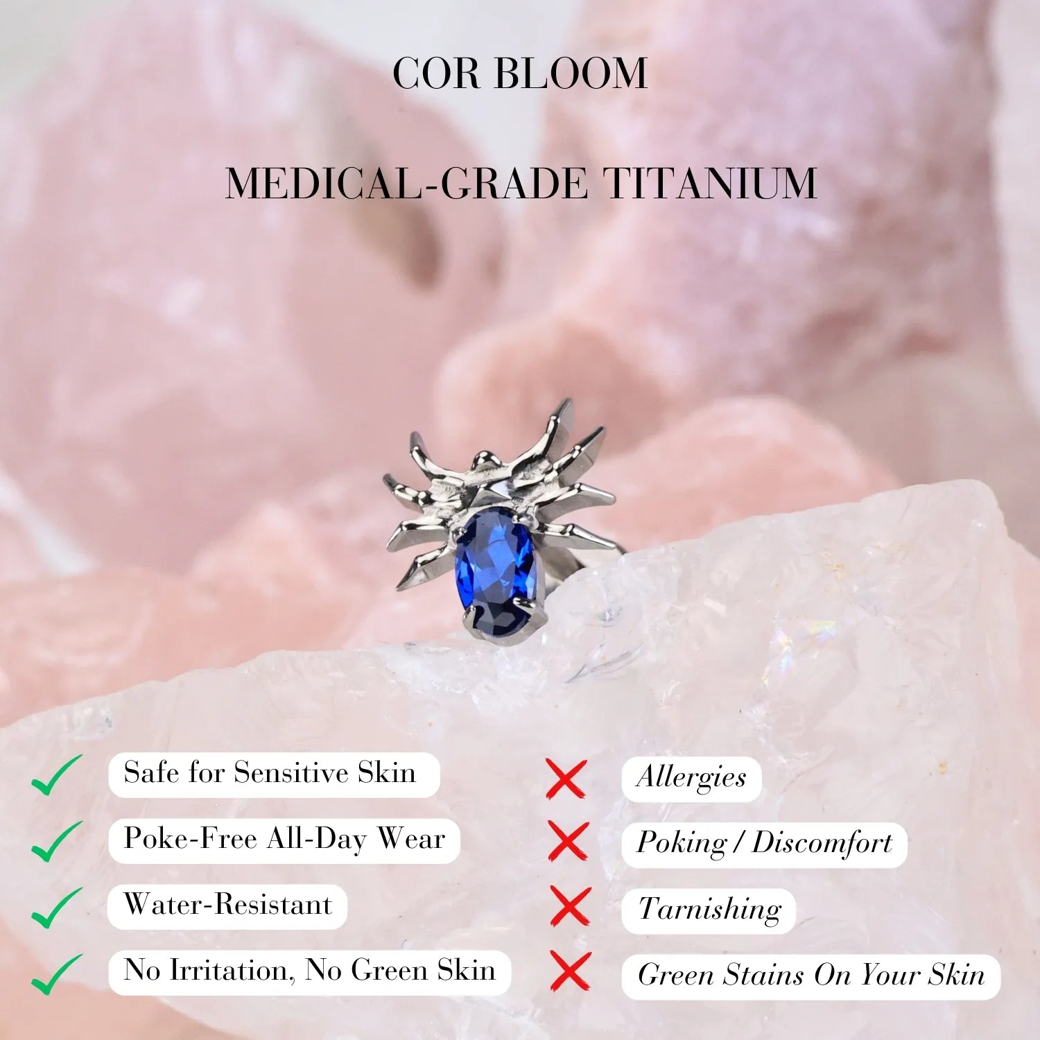 ❀ ASTM F136 Implant-Grade Titanium — safe, durable, tarnish-resistant, and ideal for both initial and healed piercings