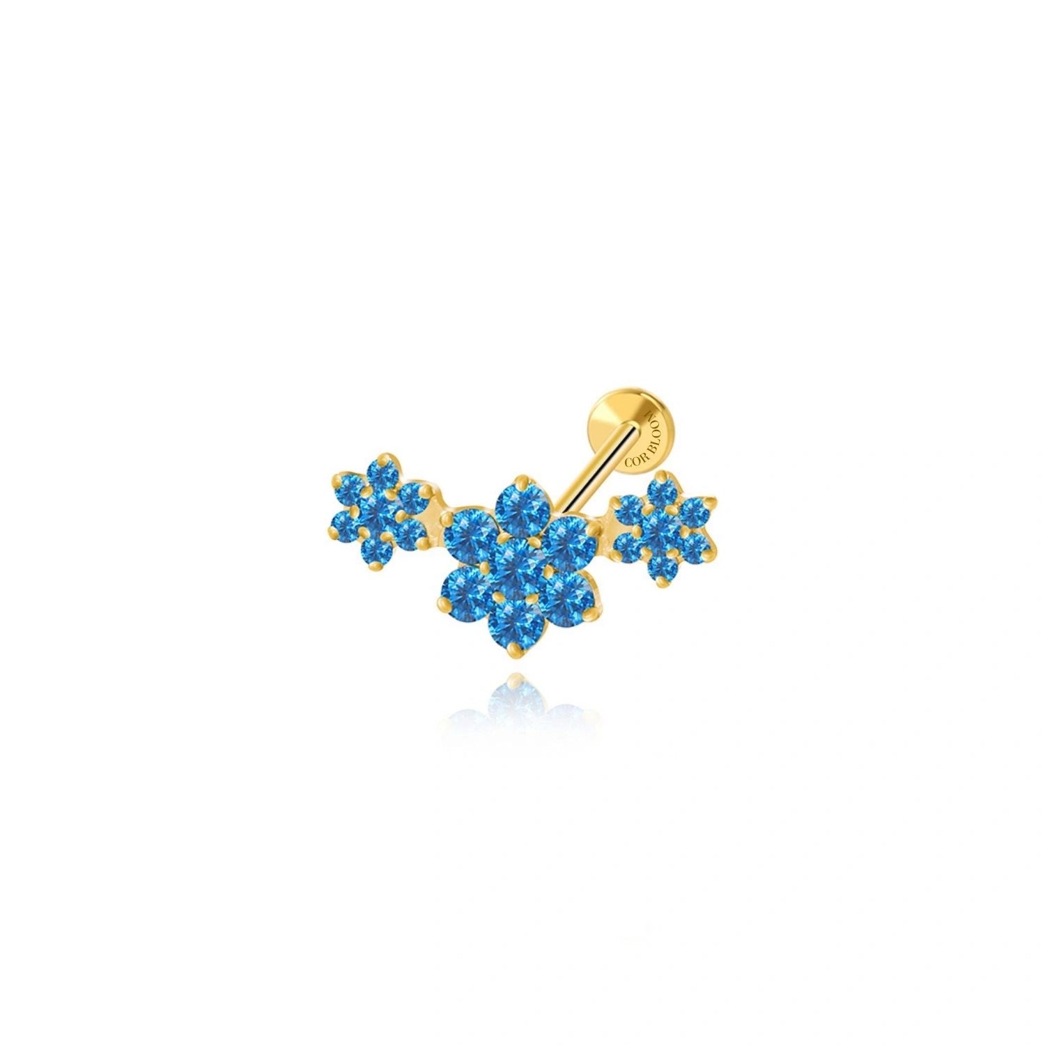 Titanium Blue Sapphire Trio Blooming Flower Stud