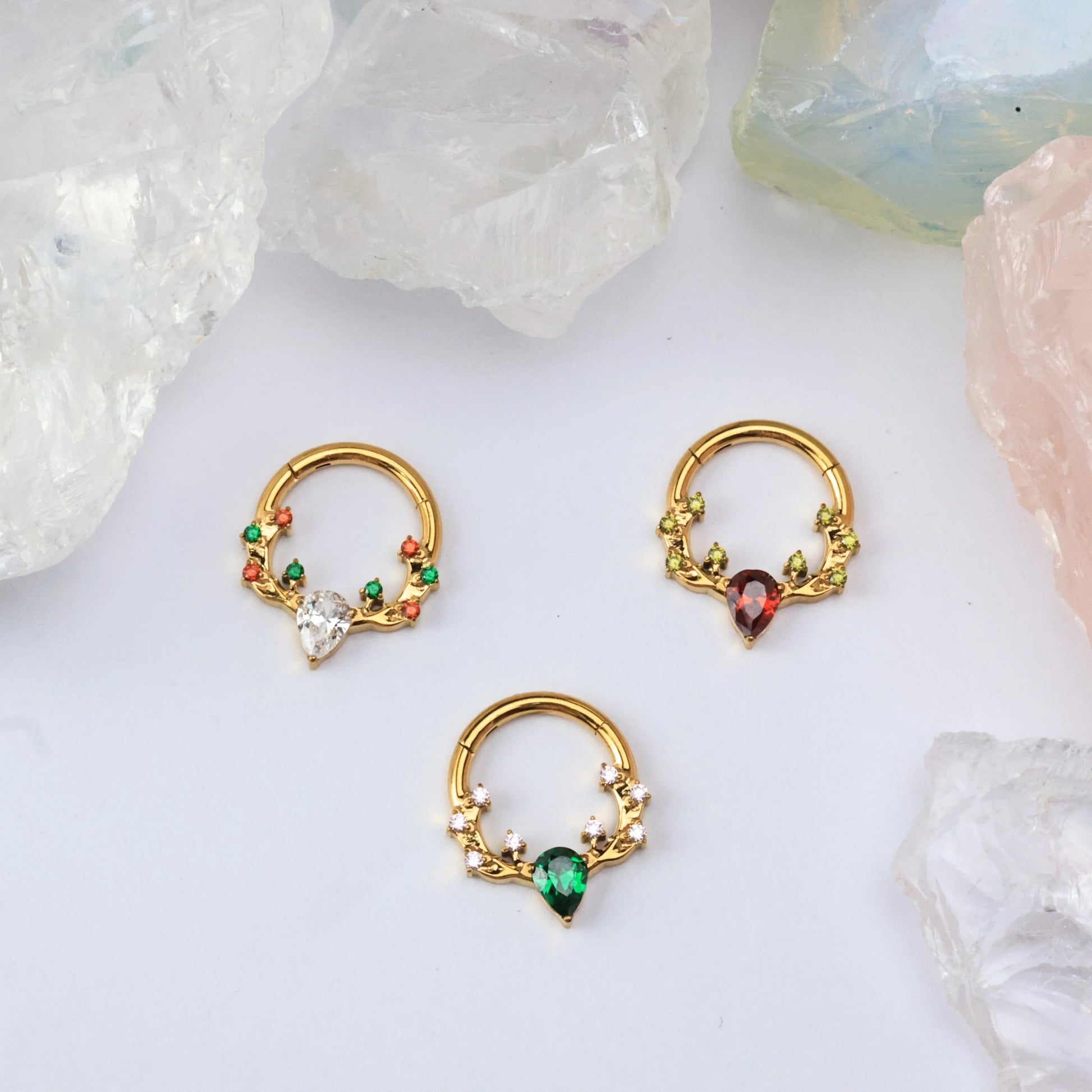 Multisized Titanium Crystal Clicker Helix Hoop | Conch Ring | Septum Clicker