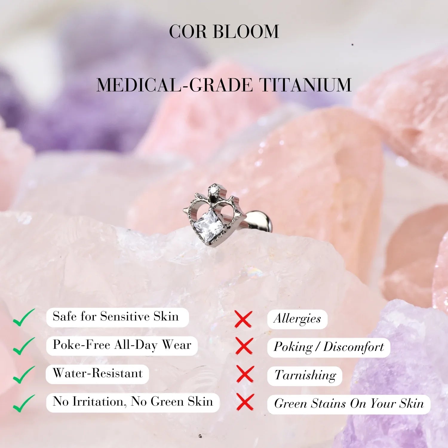 ❀ ASTM F136 Implant-Grade Titanium — safe, durable, tarnish-resistant, and ideal for both initial and healed piercings