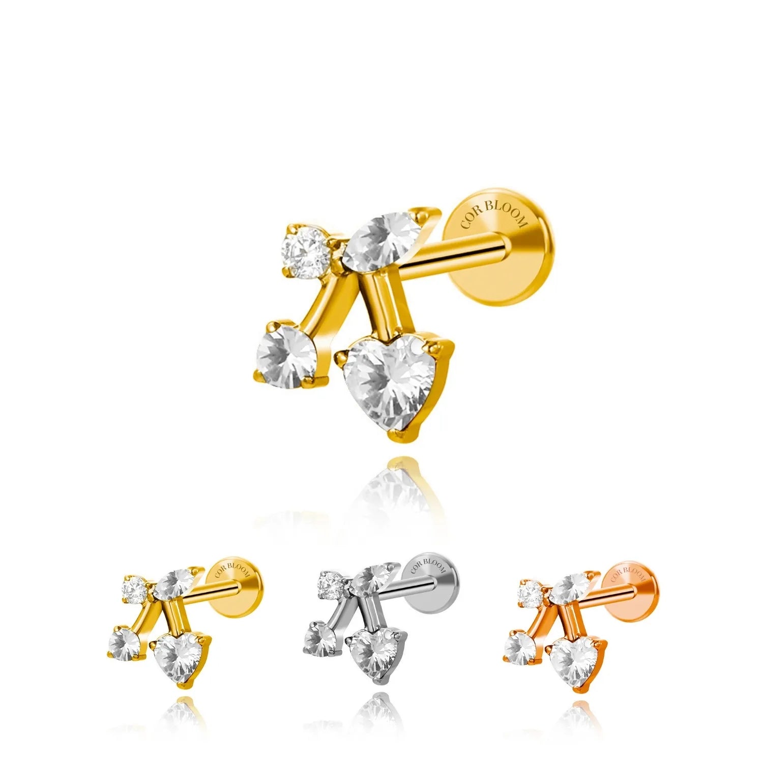 Titanium Adelpha Trio Heart Stud - Dark & Fire