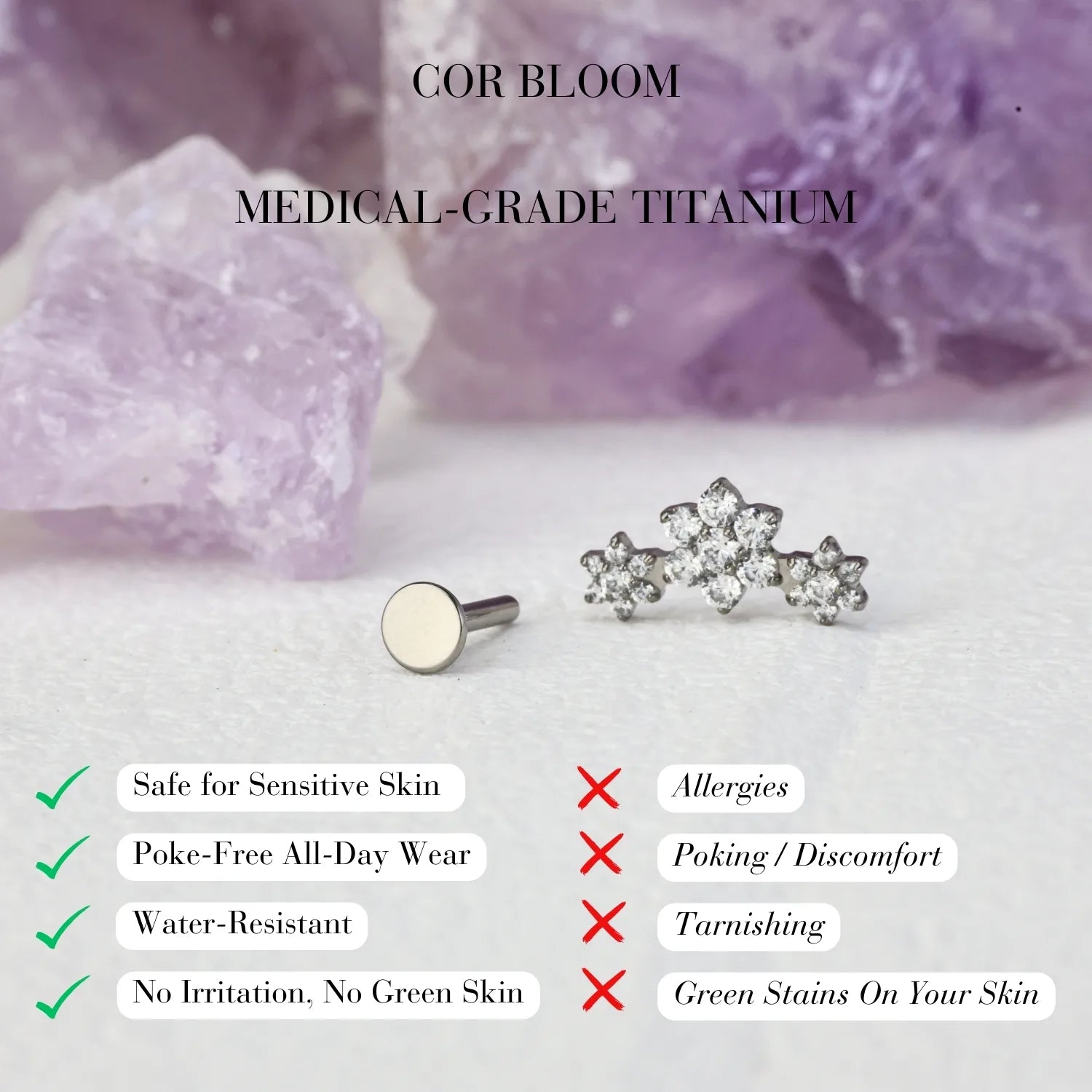 ❀ ASTM F136 Implant-Grade Titanium — safe, durable, tarnish-resistant, and ideal for both initial and healed piercings