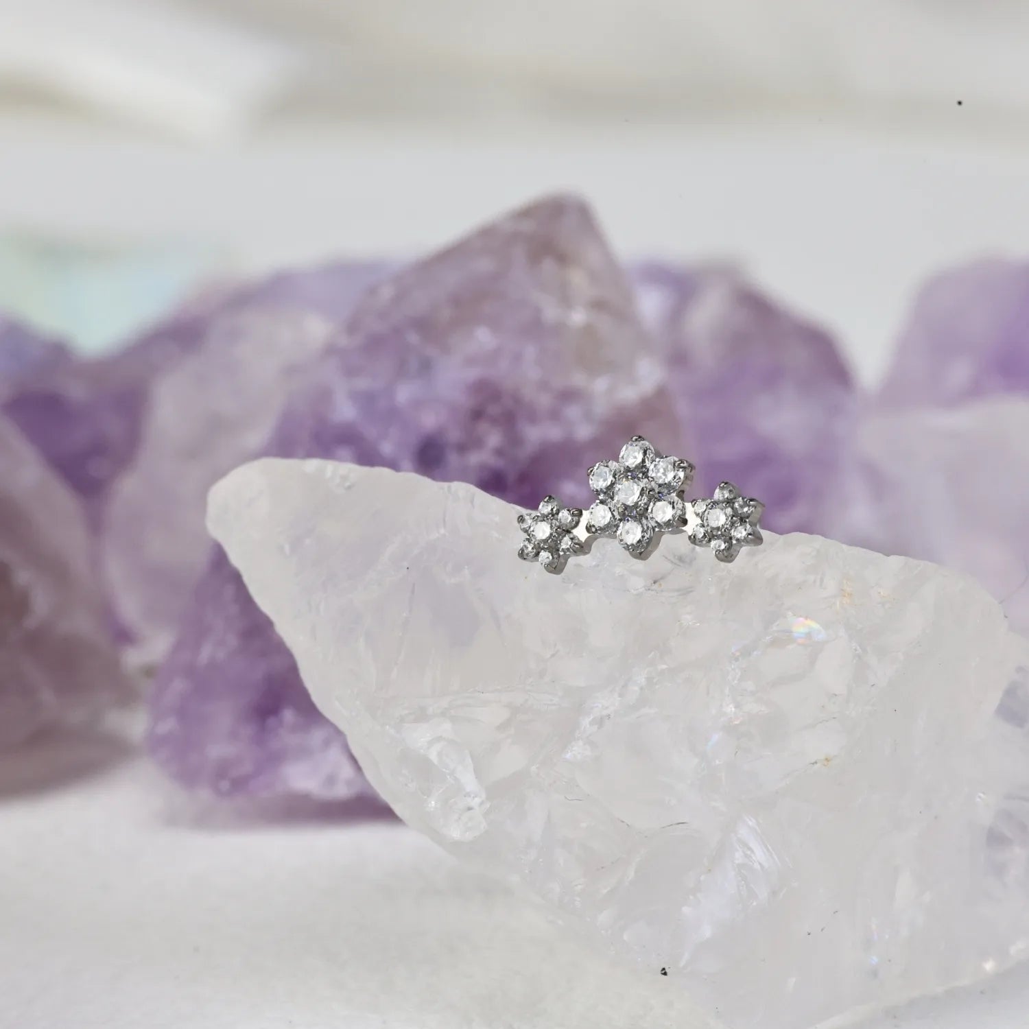 Titanium Dainty Little Diamond Flower Piercing Stud