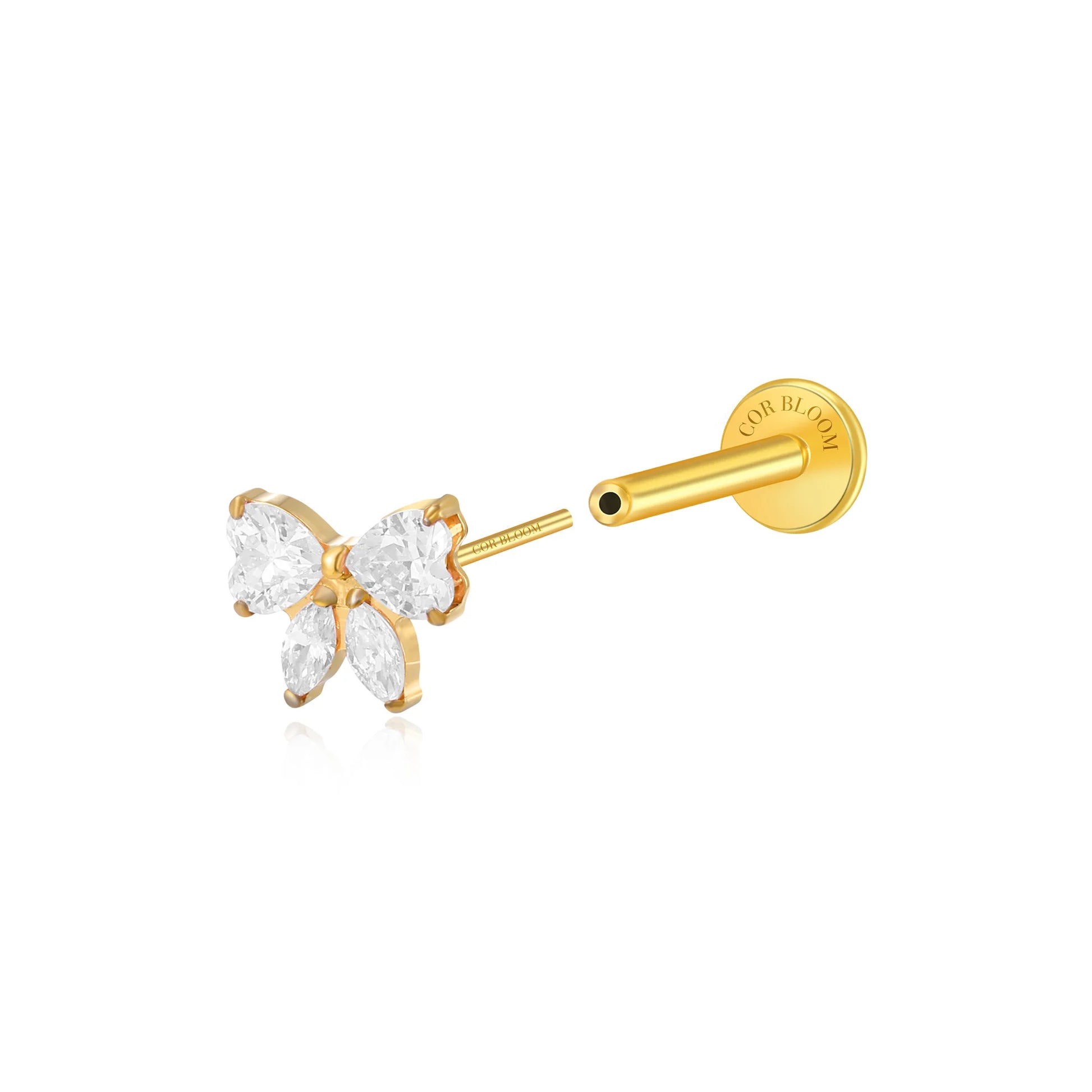 Titanium Minnie Kite-Cut Stone Flat Back Stud - Yellow Gold